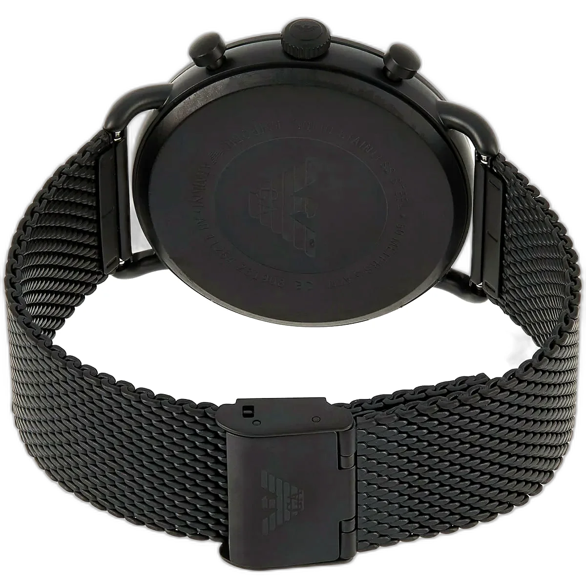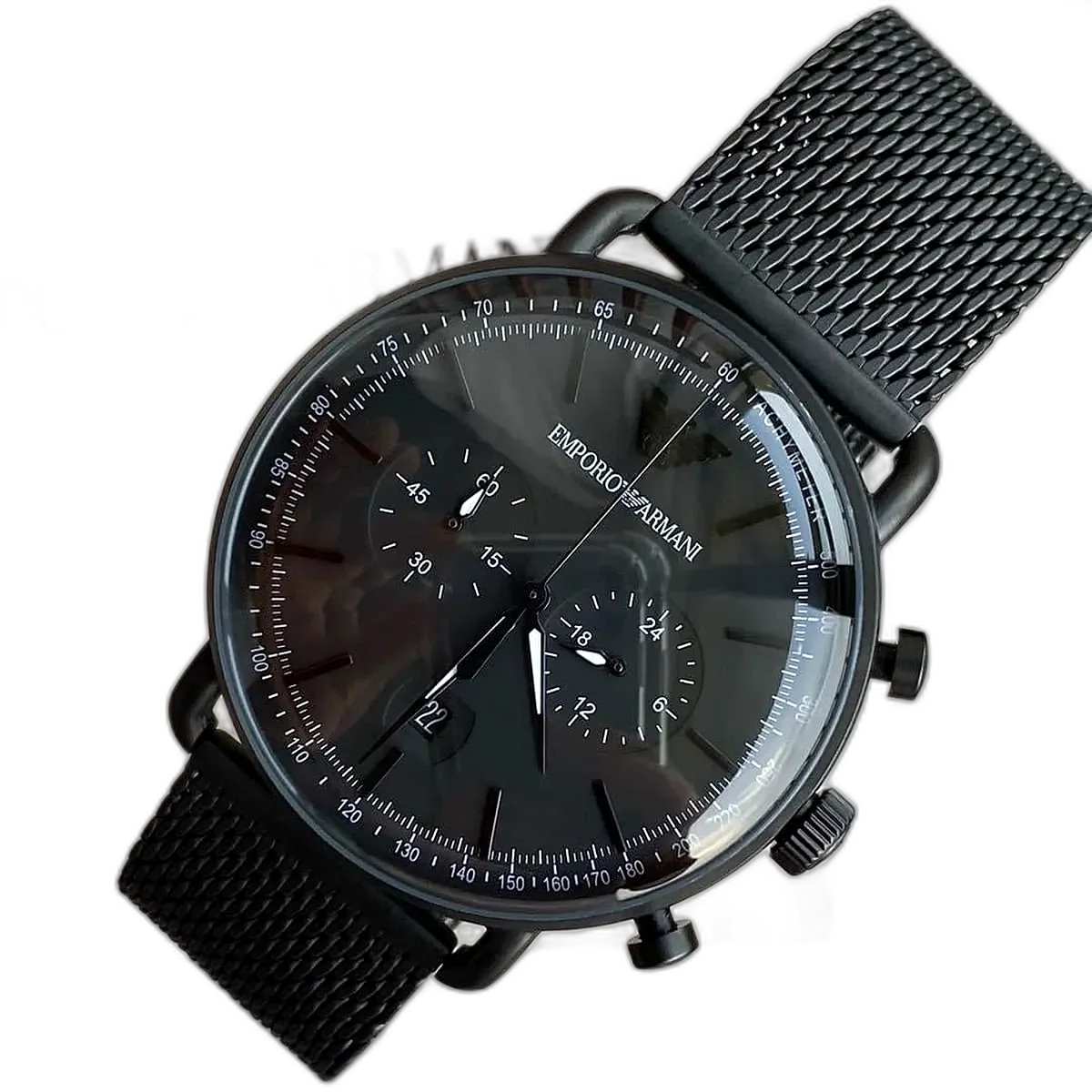 أضف لمسة قوية إلى إطلالتك مع ساعة امبوريو ارماني Emporio Armani كرونوغراف رجالية أصلية، موديل (أفياتور) Aviator AR11264. تتميز هذه الساعة الأصيلة بتصميم أنيق باللون الأسود بالكامل، يجمع بين ميناء أسود وسوار متناسق من الستانلس ستيل الأسود، مما يخلق مظهرًا جريئًا وراقيًا.
