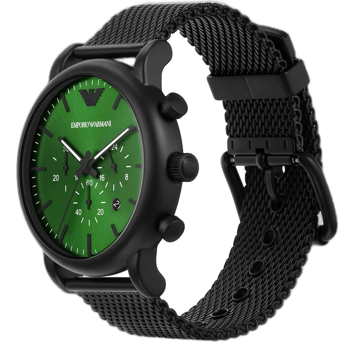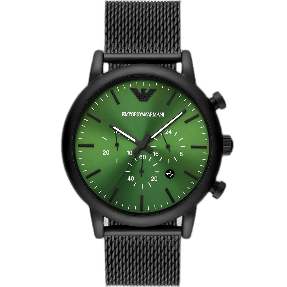 أضف لمسة جريئة وراقية إلى إطلالتك مع ساعة امبوريو ارماني Emporio Armani كرونوغراف رجالية أصلية، موديل (لويجي) Luigi AR11470. تتميز هذه الساعة الأصيلة بميناء أخضر نابض بالحياة وسوار متين من الستانلس ستيل باللون الأسود، مما يخلق مظهرًا قويًا ومميزًا يجمع بين العصرية والخالدة.