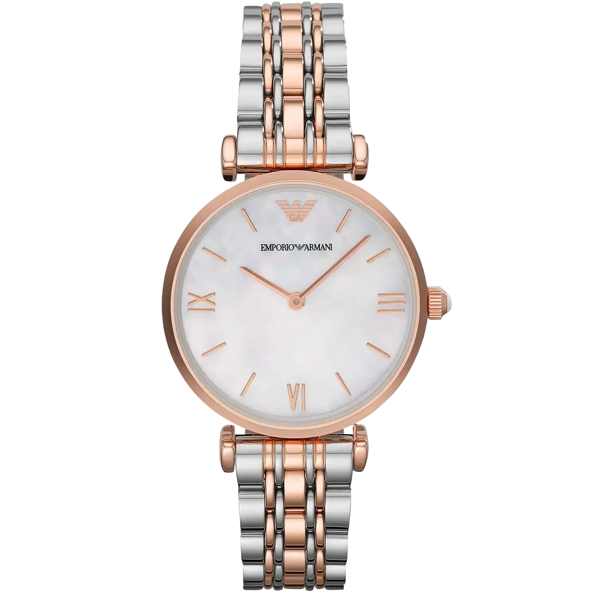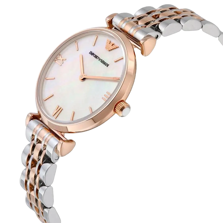 اكتشفي المزيج المثالي من التصميم البسيط والأسلوب الأنيق مع ساعة امبوريو ارماني جياني تي-بار AR1683. كعلامة مميزة للفخامة الإيطالية، تُعرف علامة امبوريو ارماني بالتزامها بالحرفية التي لا تشوبها شائبة وجمالها المميز. تجسد هذه الساعة ذلك الإرث من خلال مينائها النظيف المصنوع من عرق اللؤلؤ الأبيض، الذي يوفر إطلالة منعشة ومضيئة. يضيف السوار المصقول ذو اللونين من الستانلس ستيل باللون الفضي والذهبي الوردي الأنيق لمسة من الأناقة الخالدة والدفء، مما يجعلها قطعة متعددة الاستخدامات تكمل بسهولة الملابس الكاجوال والرسمية.
