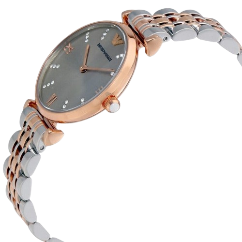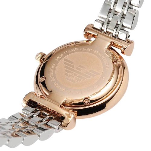 اكتشفي المزيج المثالي من التصميم البسيط والأسلوب الأنيق مع ساعة امبوريو ارماني جياني تي-بار AR1840. كعلامة مميزة للفخامة الإيطالية، تُعرف علامة امبوريو ارماني بالتزامها بالحرفية التي لا تشوبها شائبة وجمالها المميز. تجسد هذه الساعة ذلك الإرث من خلال مينائها الرمادي النظيف، الذي يوفر إطلالة منعشة ومتعددة الاستخدامات، ويكمله بشكل جميل السوار المصقول ذو اللونين من الستانلس ستيل باللون الفضي والذهبي الوردي الأنيق. يضيف هذا المزيج من الألوان لمسة من الرقي العصري والدفء، مما يجعلها قطعة متعددة الاستخدامات تكمل بسهولة الملابس الكاجوال والرسمية.