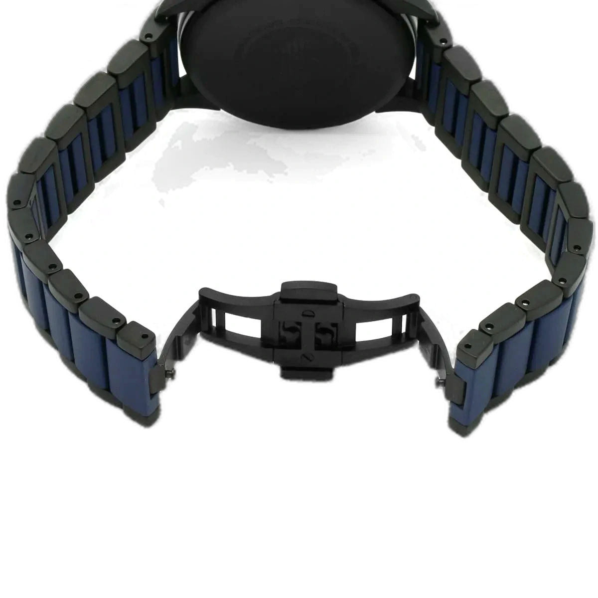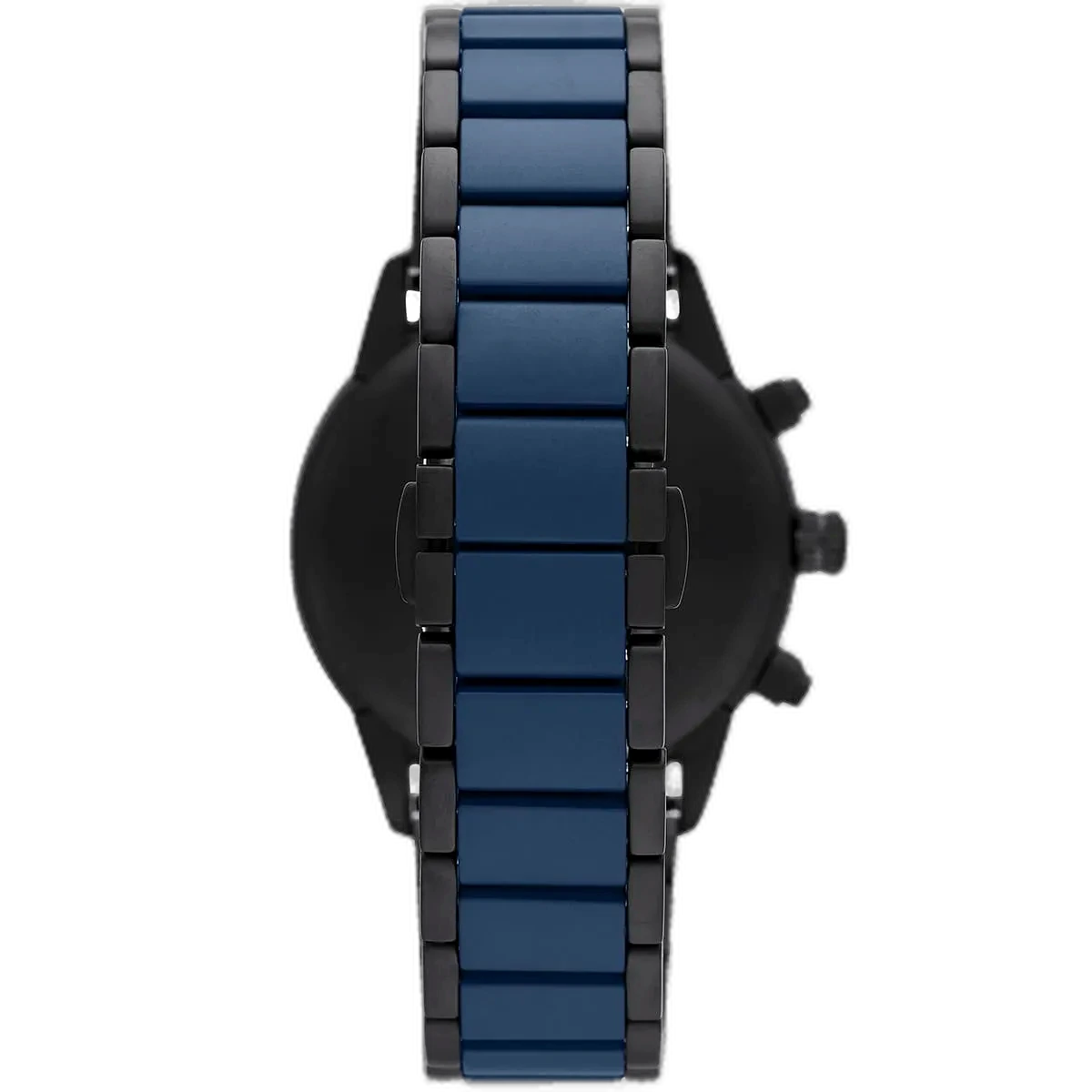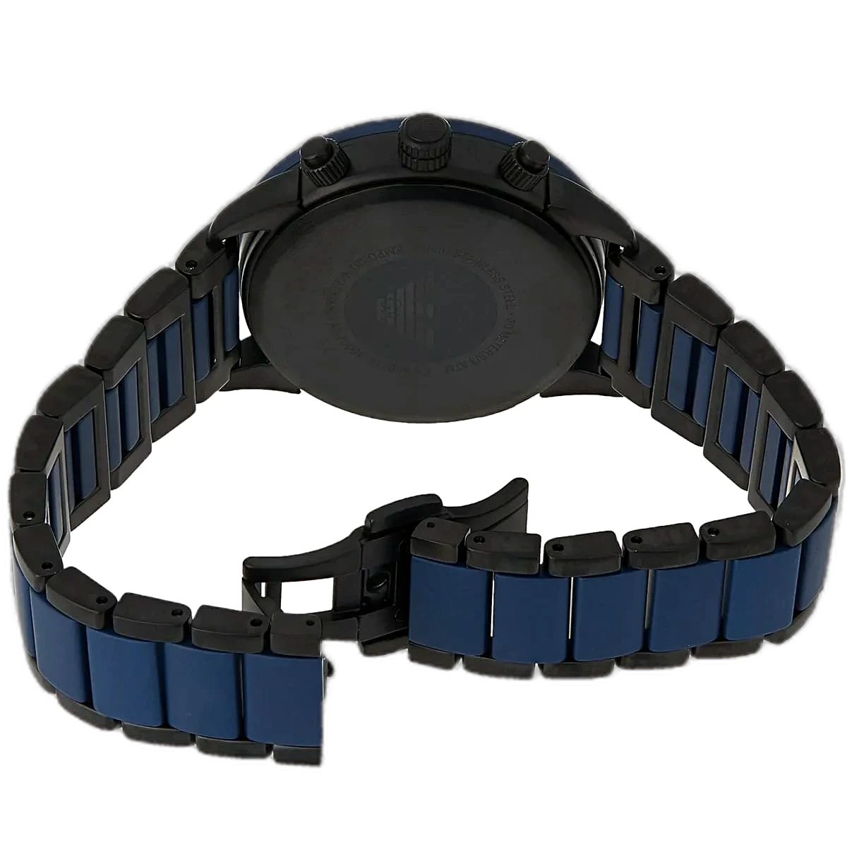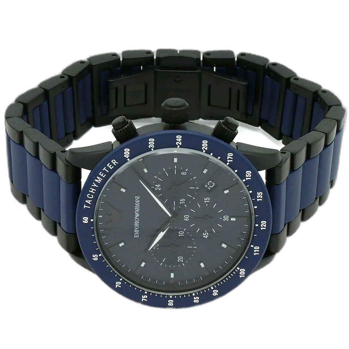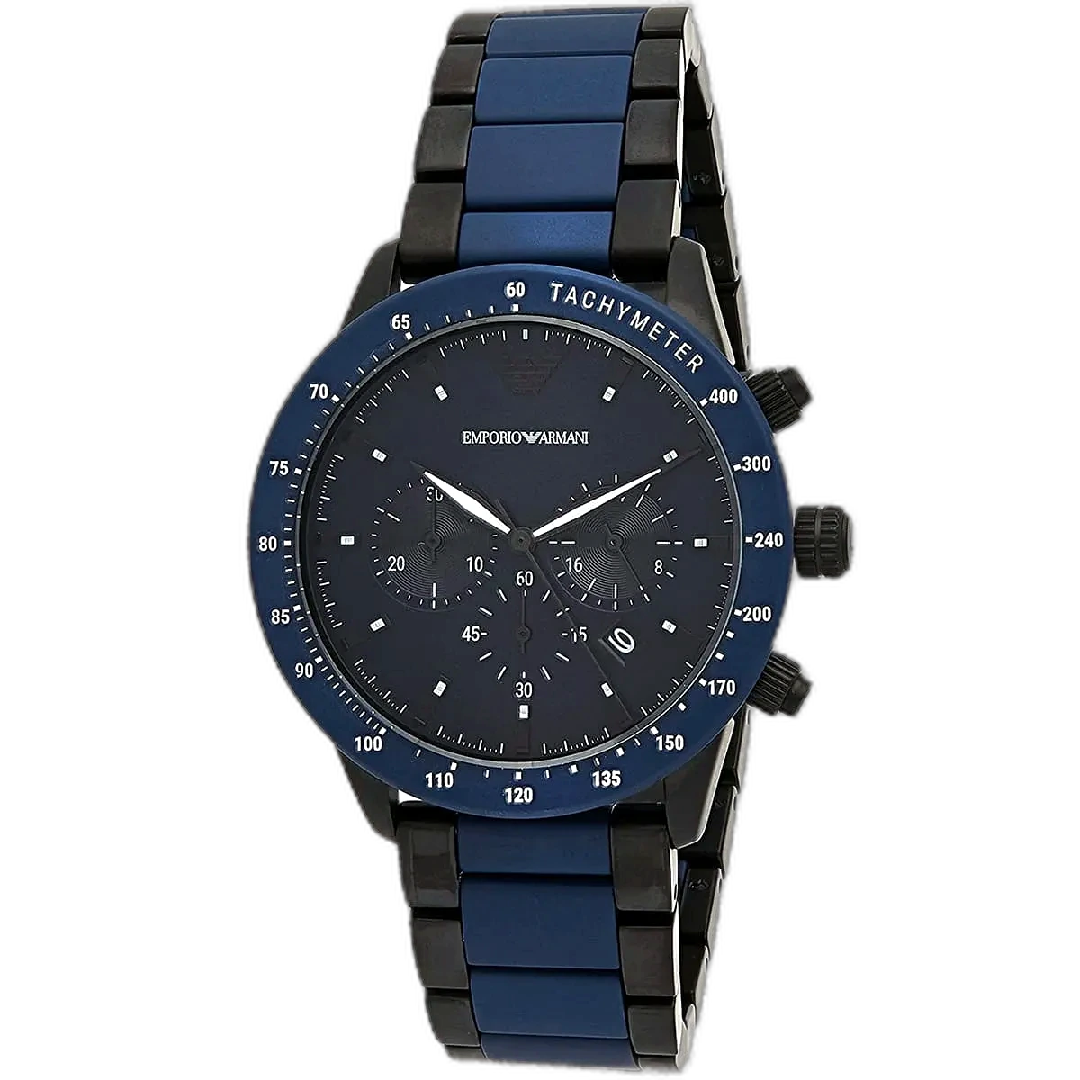أضف لمسة جريئة إلى إطلالتك مع ساعة امبوريو ارماني Emporio Armani كرونوغراف رجالية أصلية، موديل (ماريو) Mario AR70001. تتميز هذه الساعة الأصيلة بميناء أزرق أنيق وسوار فريد من الستانلس ستيل بلونين من الأسود والأزرق، مما يخلق مظهرًا قويًا ومميزًا يجمع بين العصرية والجاذبية.
