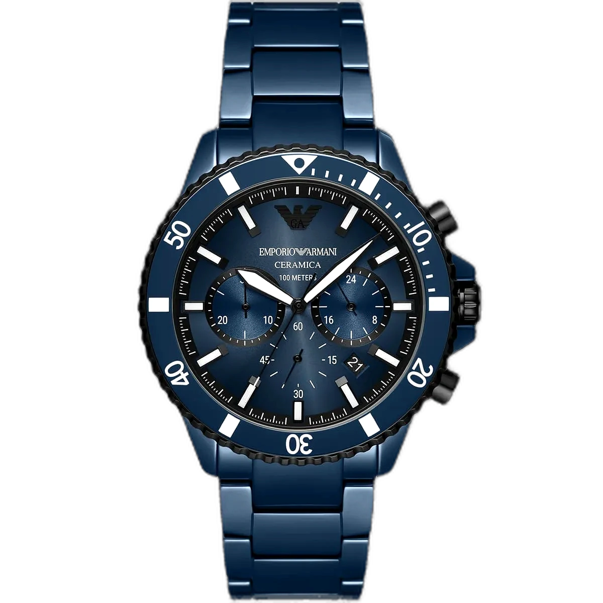 اكتشف المزيج المثالي من الوظائف الديناميكية والأسلوب العصري مع ساعة امبوريو ارماني دايفر AR70009. كعلامة مميزة للتميز في التصميم الإيطالي، تُعرف علامة امبوريو ارماني بالتزامها بالحرفية التي لا تشوبها شائبة وجمالها المميز. تجسد هذه الساعة ذلك الإرث من خلال مينائها الأزرق اللافت للنظر، الذي يوفر لمسة جمالية حادة وبسيطة. الهيكل القوي يتناغم مع سوار من السيراميك الأزرق خفيف الوزن ومريح، مما يجعلها خيارًا مثاليًا لأنماط الحياة النشطة والكاجوال على حد سواء. يُعرف السيراميك بمتانته ومقاومته للخدوش، مما يضمن أن هذه الساعة لا تبدو رائعة فحسب، بل تتحمل أيضًا الاستخدام اليومي. بفضل وظيفة الكرونوغراف الدقيقة ومقاومتها للماء حتى عمق 50 مترًا، تم تصميم هذه الساعة لتحقيق الأناقة والأداء.