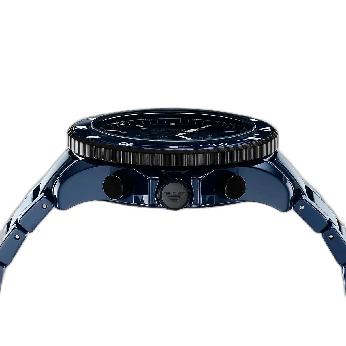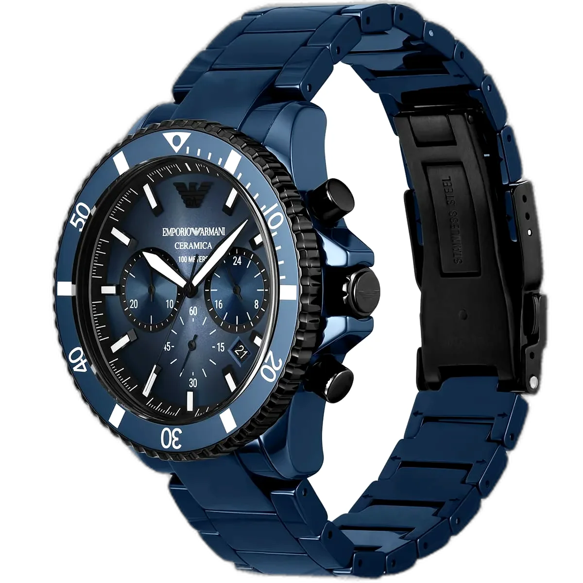 اعتمد إطلالة أنيقة وعصرية مع ساعة امبوريو ارماني Emporio Armani كرونوغراف رجالية أصلية، موديل (دايفر) Diver AR70009. تتميز هذه الساعة الأصيلة بميناء أزرق مذهل وسوار من السيراميك الأزرق المتين، مما يخلق مظهرًا أحادي اللون وراقيًا يجمع بين الأناقة والمرونة.