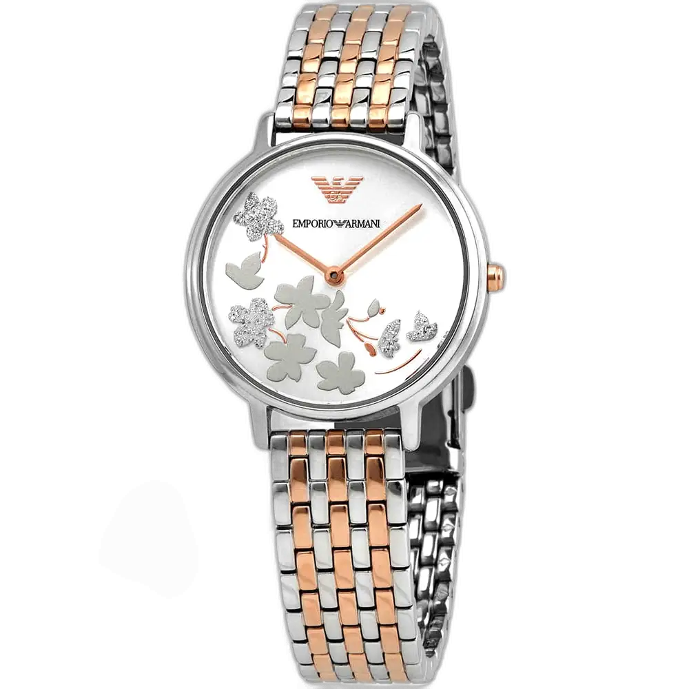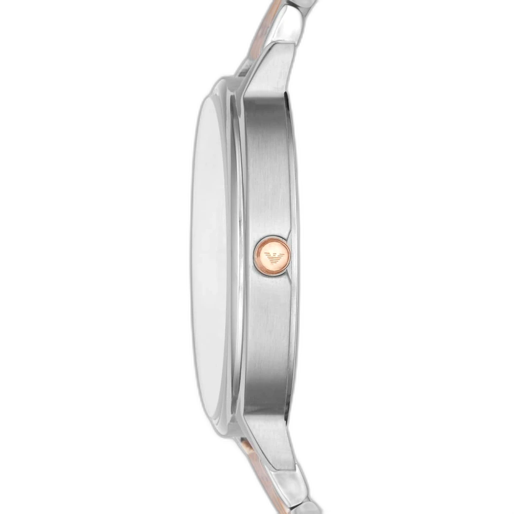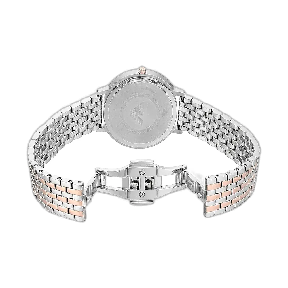 اعتمدي الأناقة الراقية مع ساعة امبوريو ارماني الأصلية للسيدات، موديل (كابا) AR11113. تتميز هذه الساعة الرائعة بمينا فضي أنيق مع سوار شبكي من الستانلس ستيل بلونين (فضي ونحاسي)، لتجمع بين الفخامة العصرية والأناقة الخالدة.