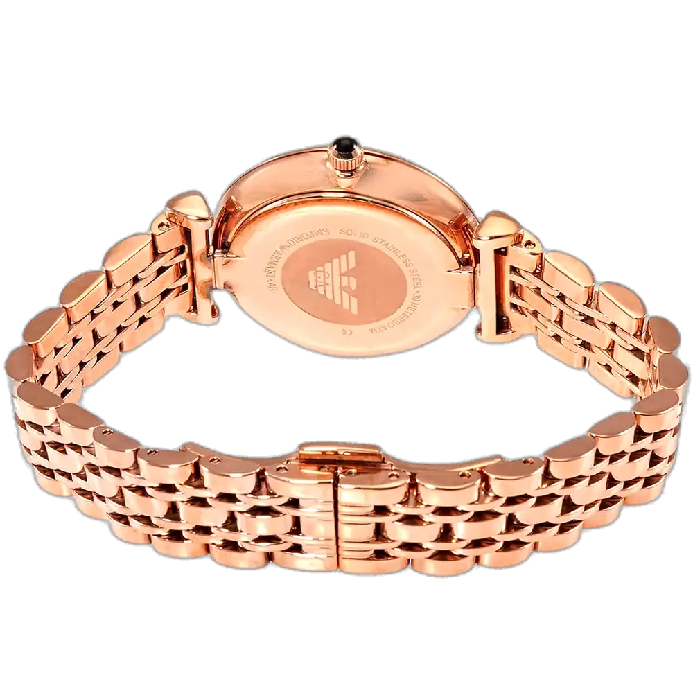 ارفعي من أناقتك مع ساعة امبوريو ارماني الأصلية للسيدات، موديل (جياني تي بار) AR11206. تتميز هذه الساعة الراقية بمينا أسود أنيق مع سوار شبكي من الستانلس ستيل باللون النحاسي (الذهبي الوردي)، لتجمع بين الفخامة العصرية والأناقة الخالدة.