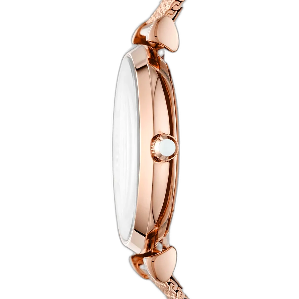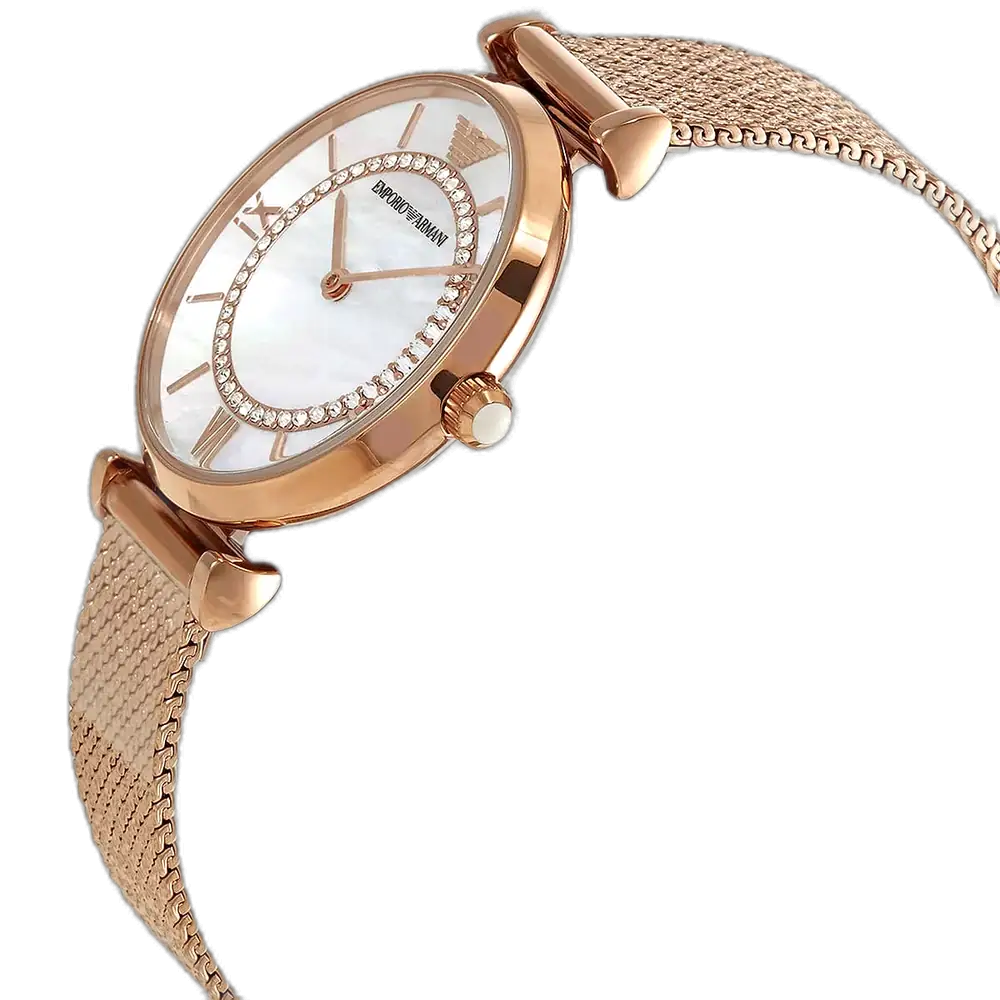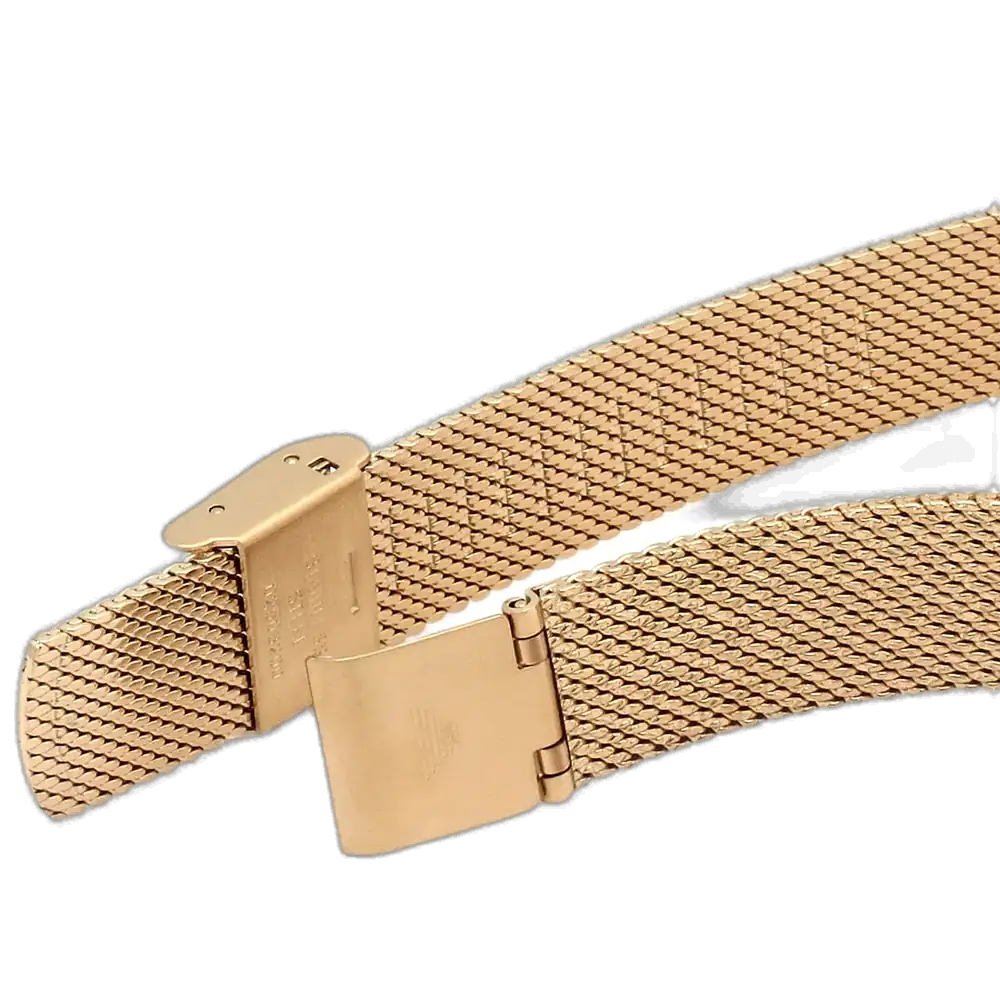 اكتشفي الأناقة الخالدة مع ساعة امبوريو ارماني الأصلية للسيدات، موديل (جياني تي بار) AR11320. تتميز هذه الساعة الراقية بمينا أبيض ناصع وسوار شبكي من الستانلس ستيل باللون النحاسي (الذهبي الوردي)، لتجمع بين الفخامة والأناقة العصرية.