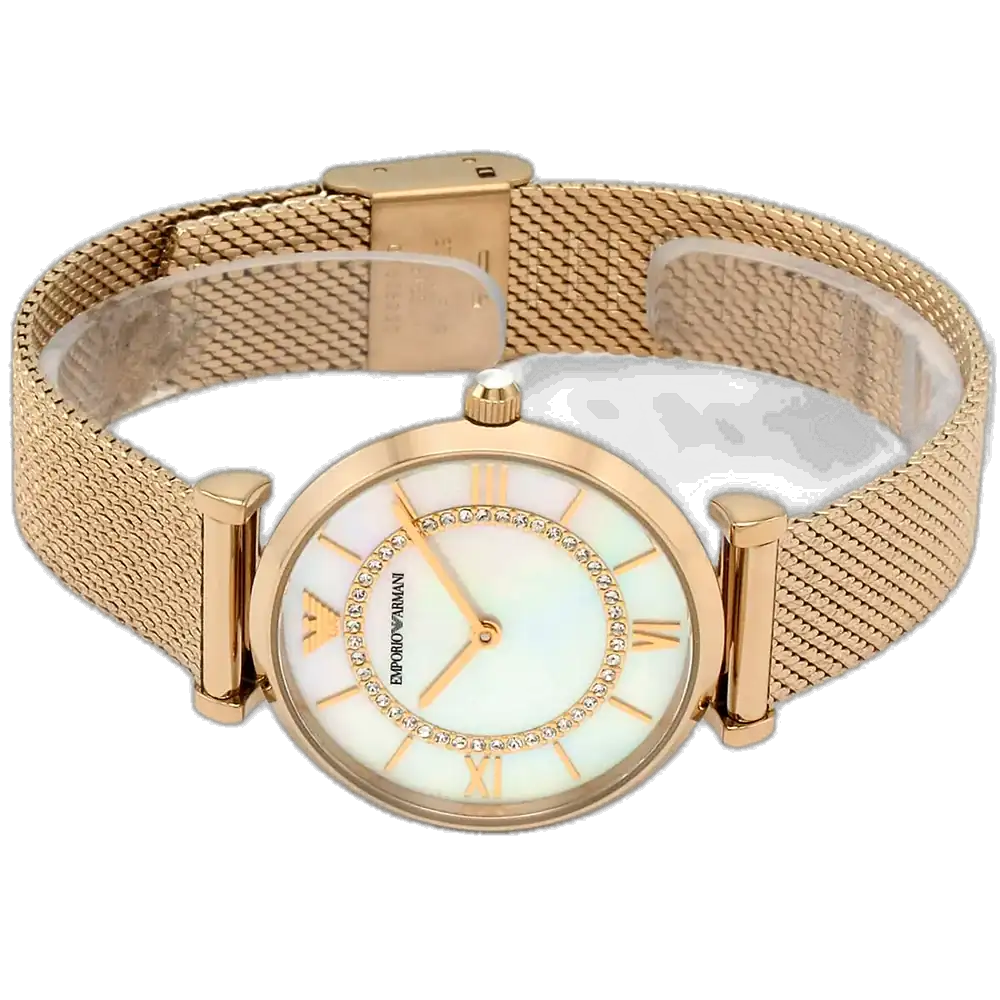 لا تفوتي فرصة امتلاك ساعة تجمع بين مينا أبيض ناصع وسوار شبكي فاخر بلون نحاسي. ساعة امبوريو ارماني جياني تي بار AR11320 هي إكسسوار أساسي لكل سيدة تقدر الجودة الأصيلة والتصميم الخالد. مظهرها الأنيق وجاذبيتها العصرية يجعلانها إضافة مميزة لأي مجموعة. اطلبيها الآن من Aurenzo وارتدي رمزًا للفخامة الإيطالية يعكس ذوقك الفريد.