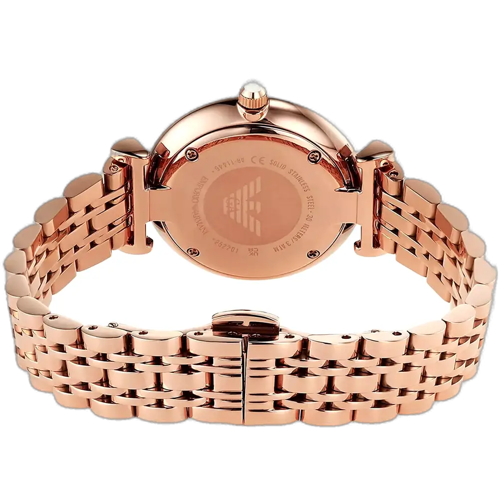 اعتمدي الأناقة الراقية مع ساعة امبوريو ارماني الأصلية للسيدات، موديل (جياني تي بار) AR11446. تتميز هذه الساعة الرائعة بمينا فضي لامع وسوار شبكي من الستانلس ستيل باللون النحاسي (الذهبي الوردي)، لتجمع بين الفخامة العصرية والأناقة الخالدة.