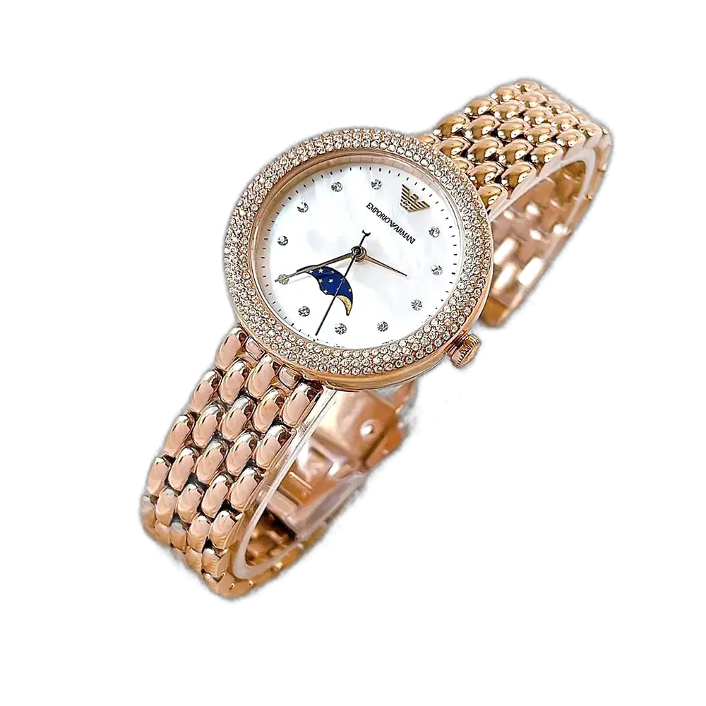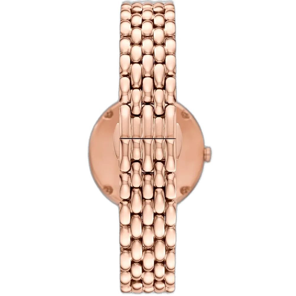 ارفعي مستوى أناقتك مع ساعة امبوريو ارماني روزا AR11462، المصممة للمرأة التي تقدر التصميم المتطور والحرفية الإيطالية. تشتهر علامة امبوريو ارماني بجمالها الفاخر وجودتها العالية. هذه الساعة، من مجموعة روزا الشهيرة، تتميز بمينا أبيض نقي موضوع في هيكل مصقول من الستانلس ستيل المطلي باللون النحاسي، مما يمنحها جاذبية فاخرة وبسيطة. يتميز تصميم المينا بالبساطة مع علامات وقت دقيقة، مما يعزز سحرها الراقي. السوار الشبكي من الستانلس ستيل باللون النحاسي (الذهبي الوردي) يكمل هذا التصميم، مقدمًا ملاءمة مريحة وملمسًا عصريًا وانسيابيًا يزيد من جاذبيتها الفاخرة.