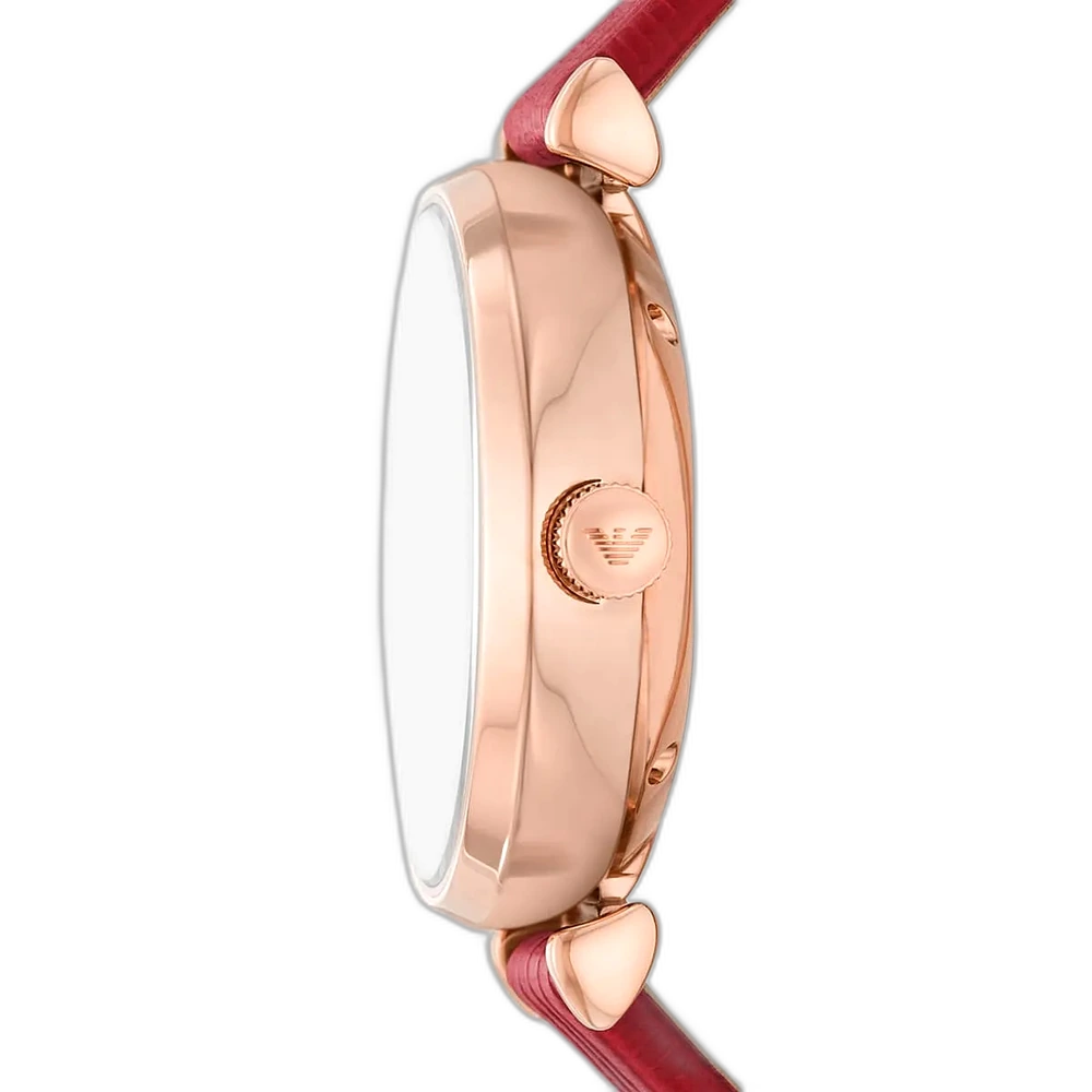 اكتشفي الأناقة الجريئة مع ساعة امبوريو ارماني الأصلية للسيدات، موديل (جياني تي بار) AR60048. تتميز هذه الساعة بمينا أبيض ناصع وسوار جلدي أحمر نابض بالحياة، لتجمع بين الفخامة الخالدة والأناقة العصرية.