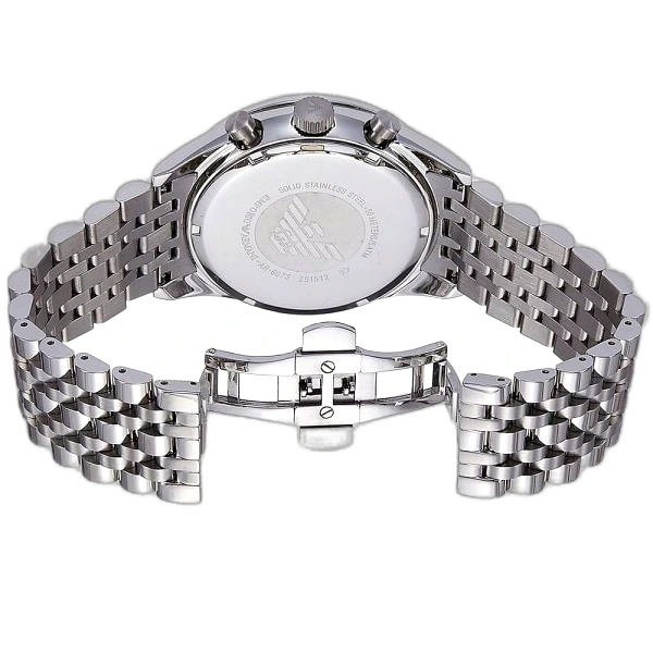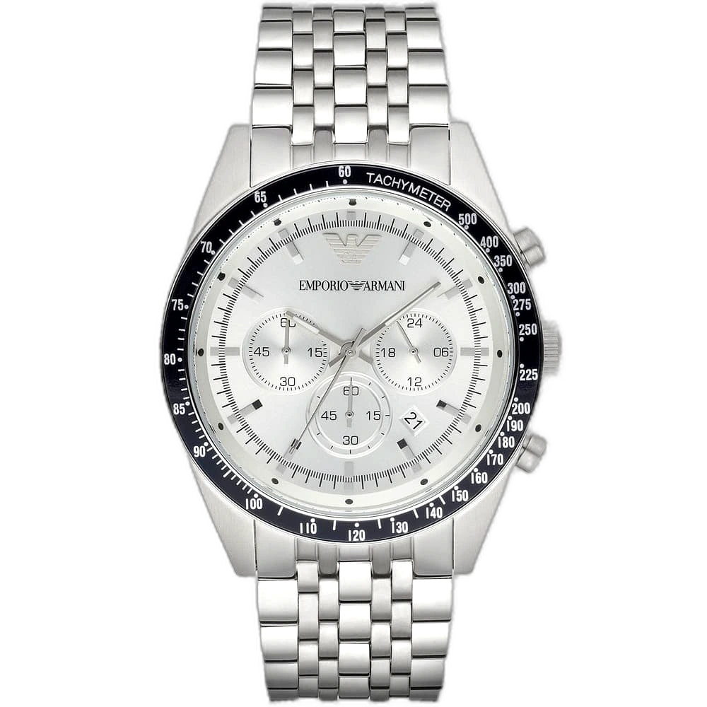 ساعة امبوريو ارماني Emporio Armani رجالي أصلية موديل (تازيو) Tazio AR6073. بمينا لونها فضي و سوار من الستانلس ستيل بلون فضي.