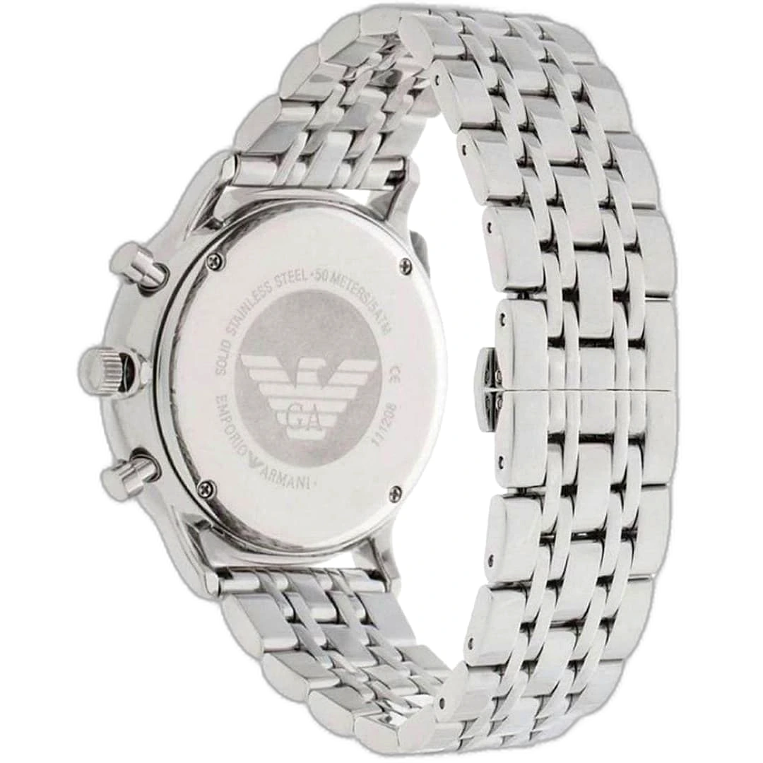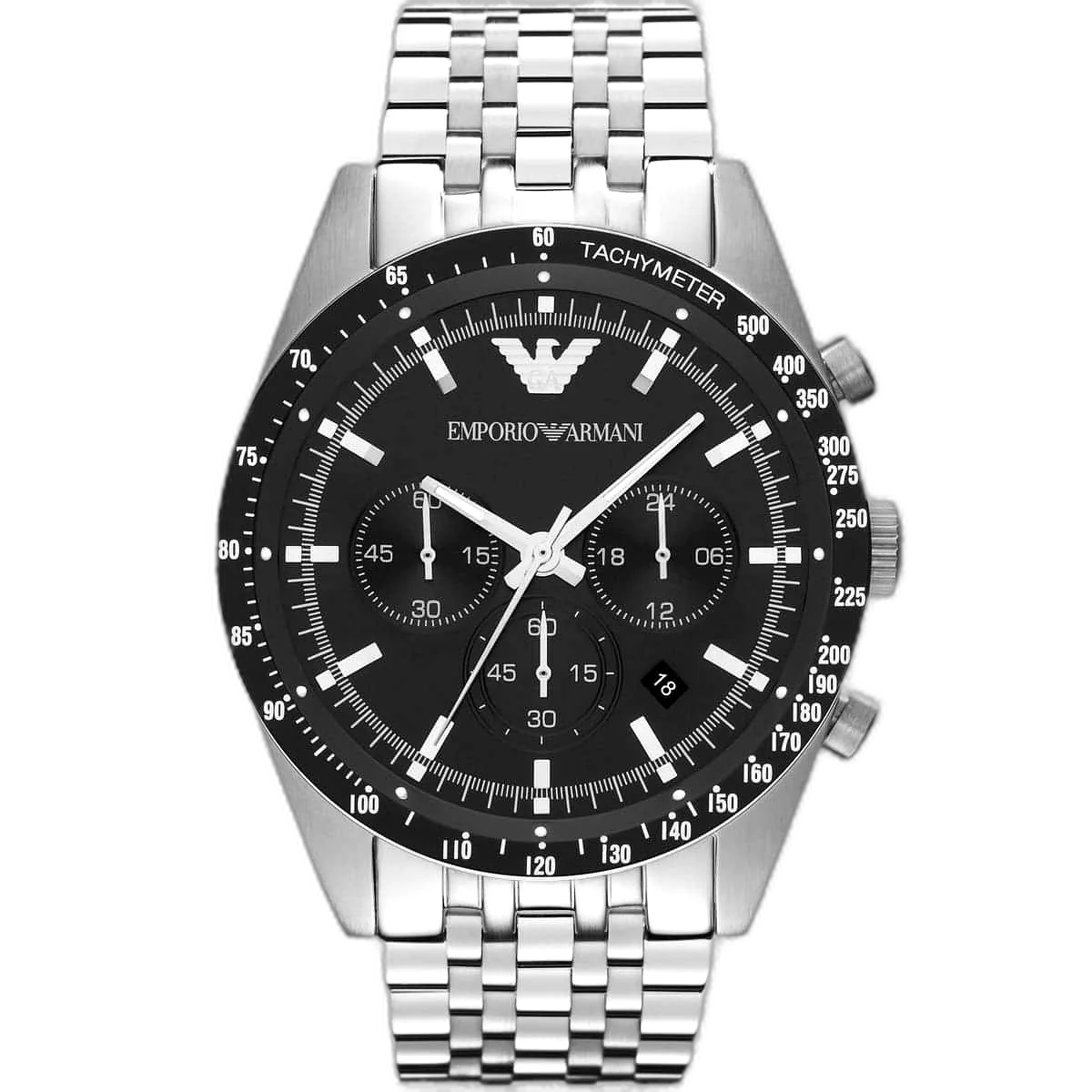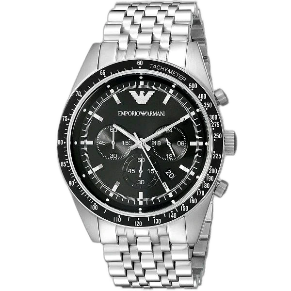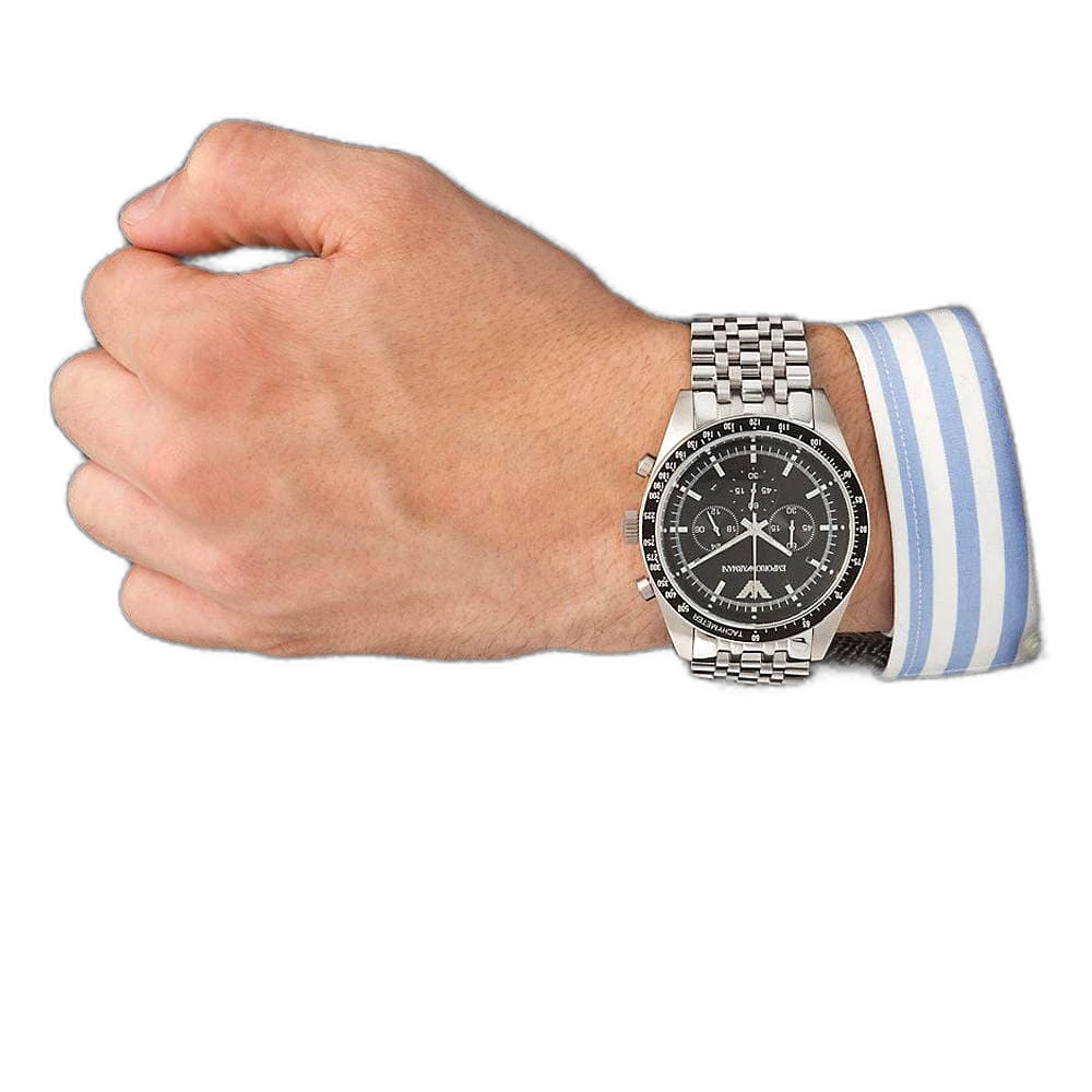 ساعة امبوريو ارماني Emporio Armani رجالي أصلية موديل (سبورتيفو) Sportivo AR5988. بمينا لونها أسود و سوار من الستانلس ستيل بلون فضي.