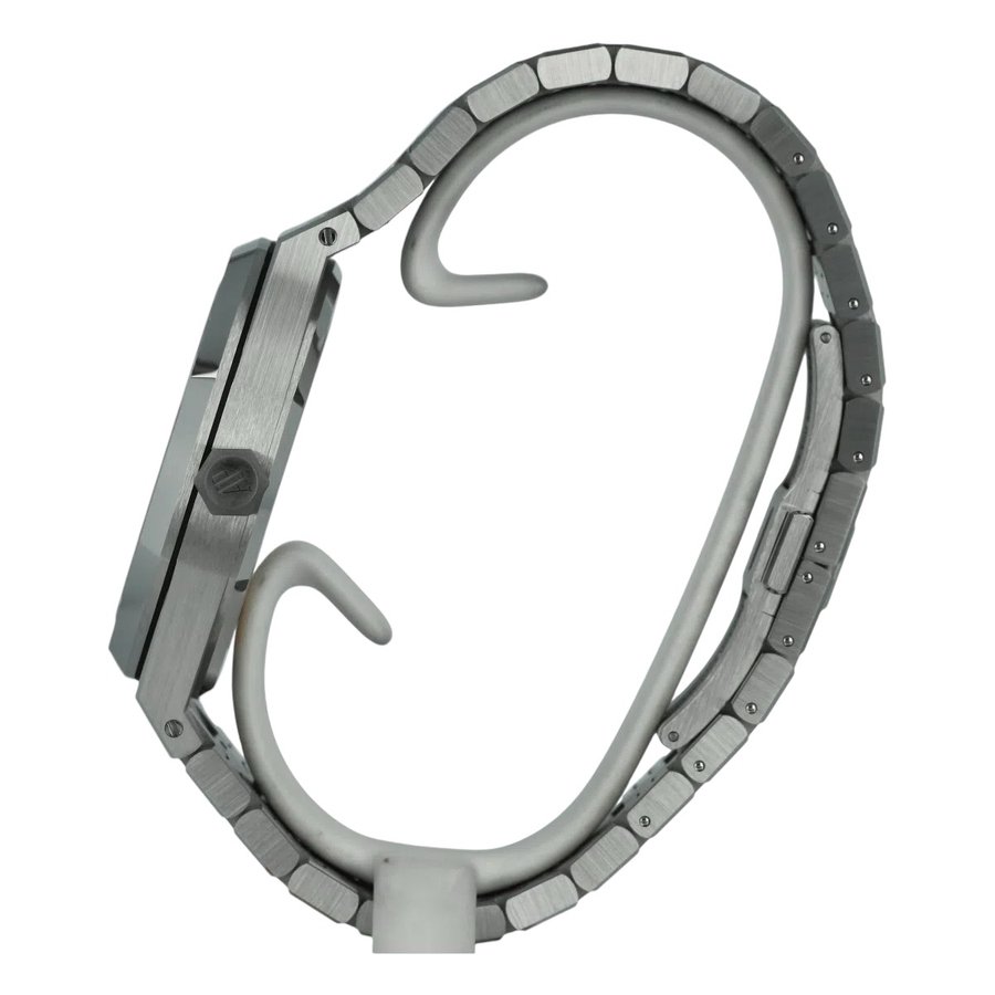 ادخل إلى عالم صناعة الساعات الراقية مع ساعة أوديمار بيغيه رويال أووك، الساعة التي أوجدت فئة الساعات الرياضية الفاخرة. بتصميمها الثوري ذي الإطار المثمّن وسوارها المدمج، تعد ساعة رويال أووك أكثر من مجرد أداة لمعرفة الوقت، إنها رمز للتحدي والذوق الرفيع. هذا الموديل المذهل الـ Mirror Original، بقرصه الأبيض الناصع وسواره المصقول من ستانلس ستيل الفضي، يلتقط جوهر هذا التصميم الأسطوري. إنها قطعة أساسية تعكس الأناقة العصرية وتحيي تراثاً متمرداً. لا ترتدِ ساعة فقط، بل ارتدِ أسطورة. ساعة أوديمار بيغيه رويال أووك هي أكثر من مجرد إكسسوار؛ إنها شهادة على أناقتك وتقديرك لتاريخ التصميم الرائد. يضمن لك مظهرها المميز التميز في أي حشد، بينما تضمن لك حرفيتها التي لا تشوبها شائبة أنها ساعة موثوقة بقدر ما هي جميلة. اطلب هذا الموديل الأيقوني الآن من Aurenzo وقم ببيان جريء سيحظى بالإعجاب مدى الحياة.