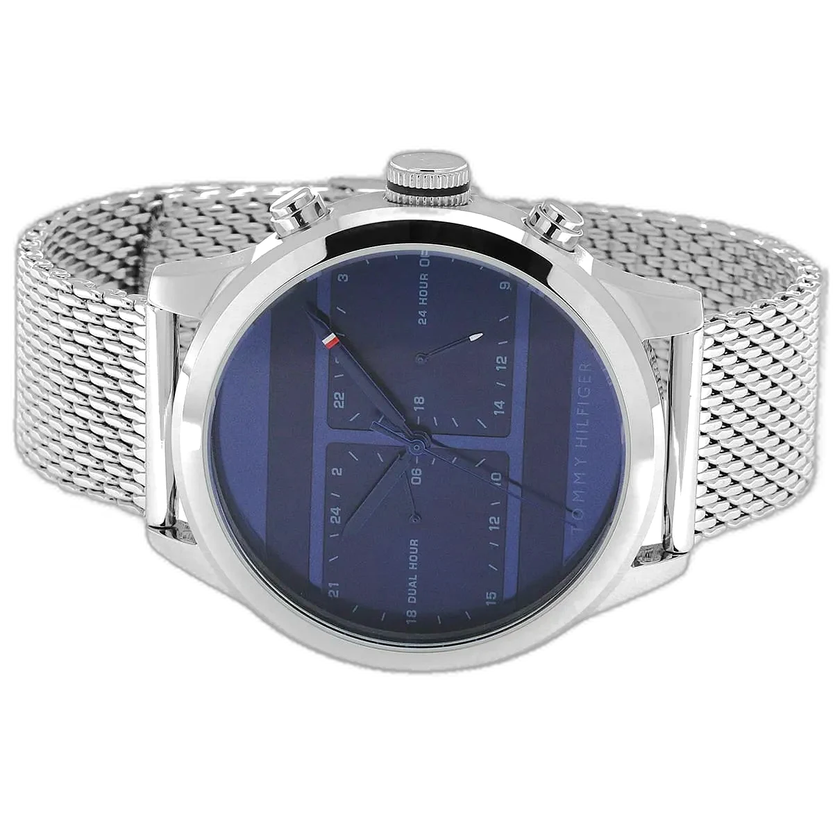 ساعة تومي هيلفيغر Tommy Hilfiger رجالي أصلية موديل (ايكون) 1791596 Icon. الرقم المصنعي TH.368.1.14.2598. بمينا لونها أزرق و سوار من الستانلس ستيل بلون فضي.