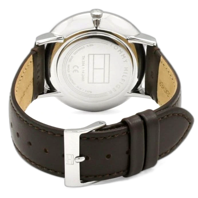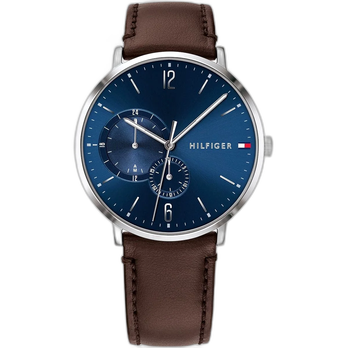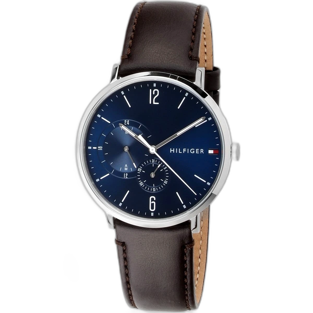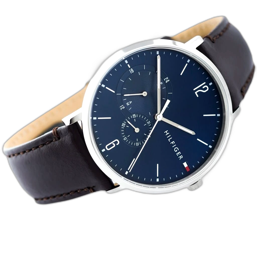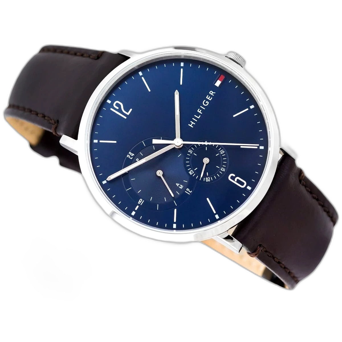 ساعة تومي هيلفيغر Tommy Hilfiger رجالي أصلية موديل (بروكلين) 1791508 Brooklyn. الرقم المصنعي TH.354.1.14.2460. بمينا لونها أزرق و سوار من الجلد الطبيعي بلون بني.