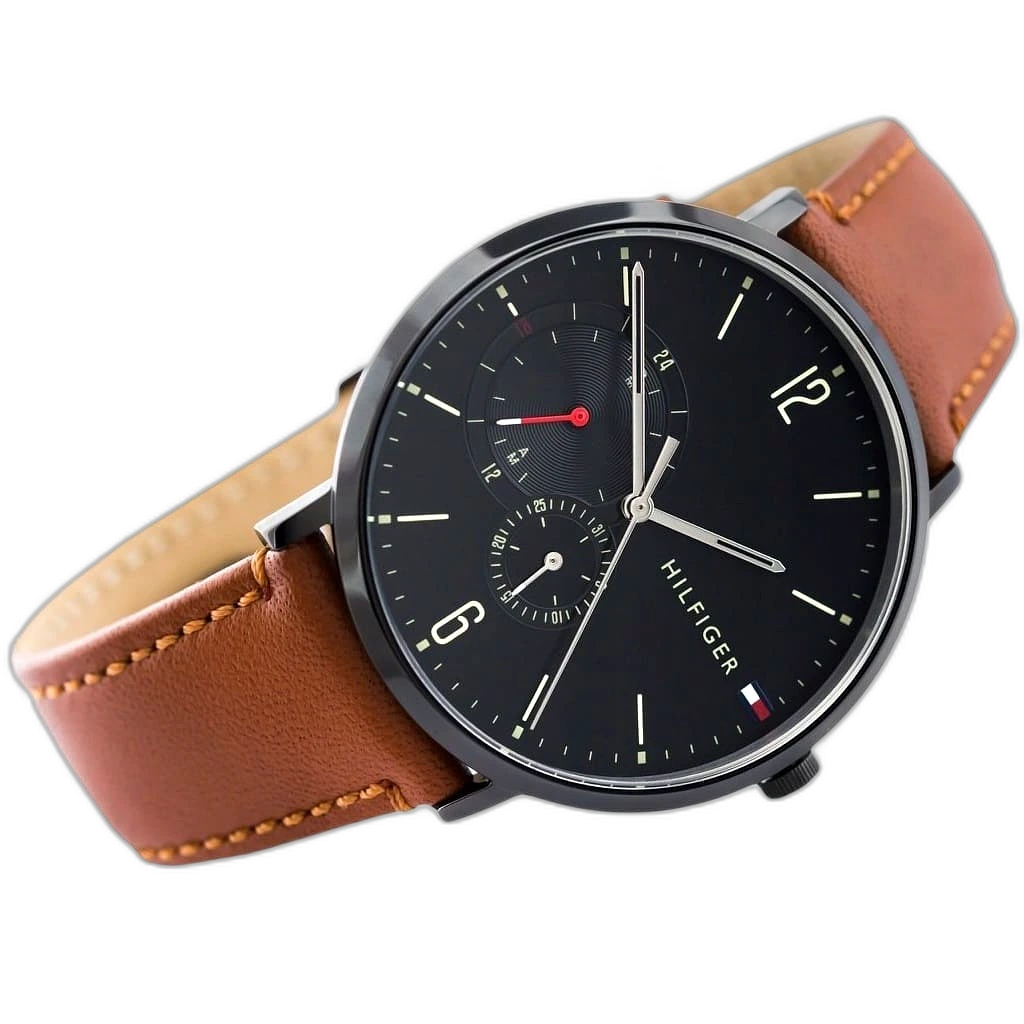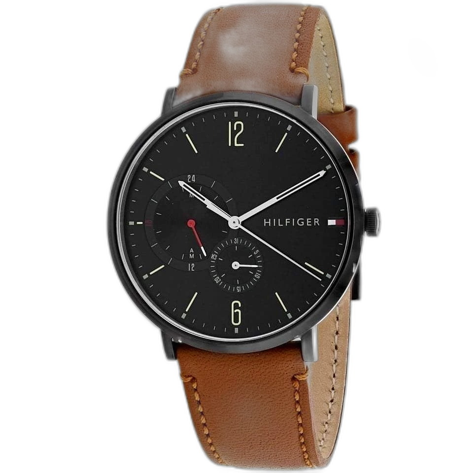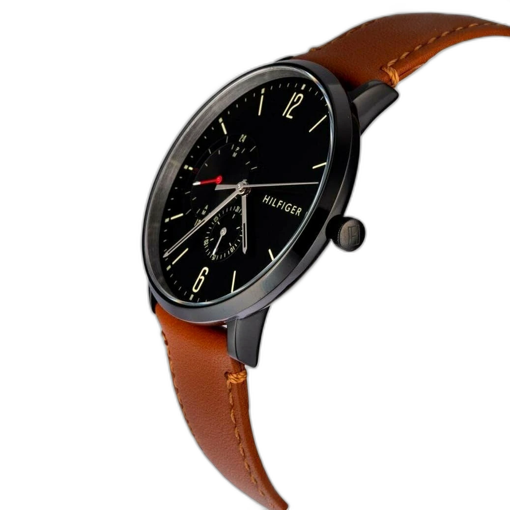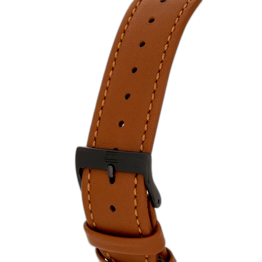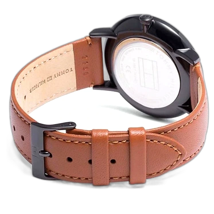 ساعة تومي هيلفيغر Tommy Hilfiger رجالي أصلية موديل (بروكلين) 1791510 Brooklyn. الرقم المصنعي TH.354.1.34.2461. بمينا لونها أسود و سوار من الجلد الطبيعي بلون بني.