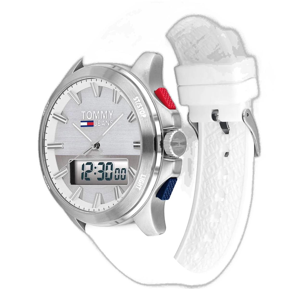 انغمس في عالم الموضة الأمريكية الأيقونية مع ساعة تومي هيلفيغر جينز، التي تجمع بين الأسلوب العصري والوظائف العملية. تشتهر تومي هيلفيغر بحرفيتها عالية الجودة وتصاميمها المميزة، وهذه الساعة الأصلية، موديل 1791764 (الرقم المصنعي TH.362.1.14.2871)، تعكس ذلك بامتياز. بفضل ميناها الفضية الأنيقة وسوارها المتين من السيليكون باللون الأبيض، تقدم هذه الساعة مظهرًا مشرقًا ومتعدد الاستخدامات، مما يجعلها مثالية للرجل العصري الذي يقدر الأناقة والراحة. مقاومة الماء حتى عمق 50 مترًا تجعلها مناسبة للأنشطة اليومية، بما في ذلك السباحة الخفيفة، ولكنها غير موصى بها للغوص العميق أو الرياضات المائية عالية التأثير. تتميز الساعة بحركة كوارتز ثلاثية العقارب، ومصممة لتكمل أي مظهر كاجوال، مما يجعلها رفيقًا مثاليًا للارتداء اليومي وأنماط الحياة النشطة.