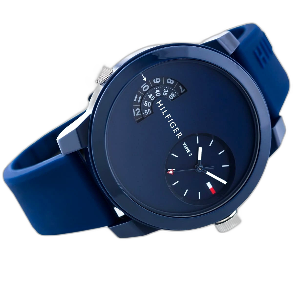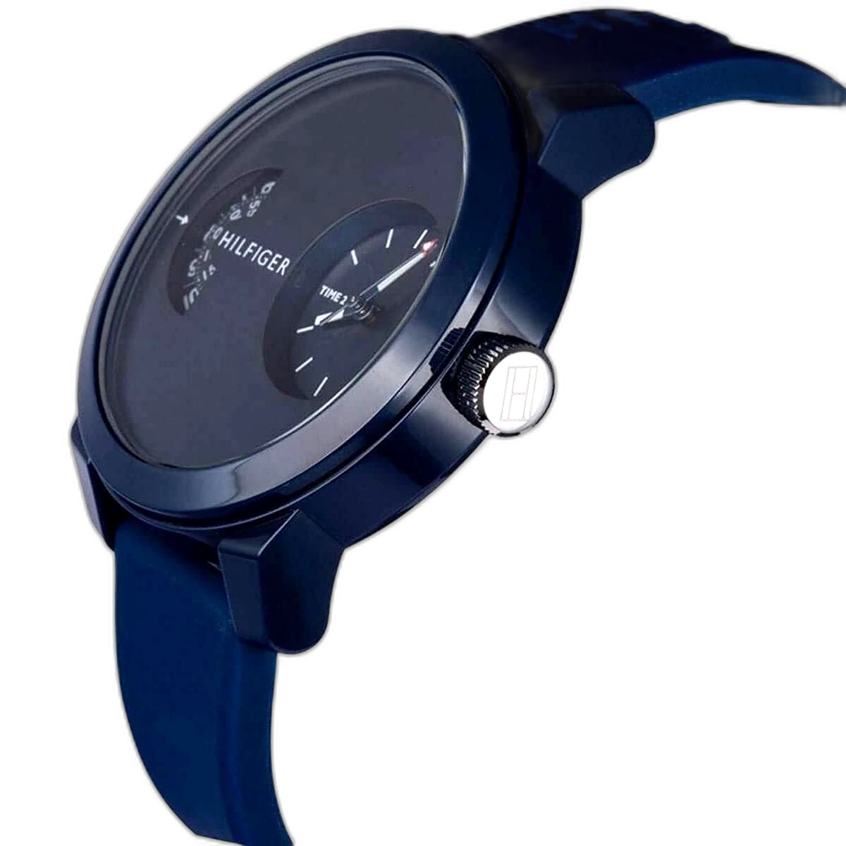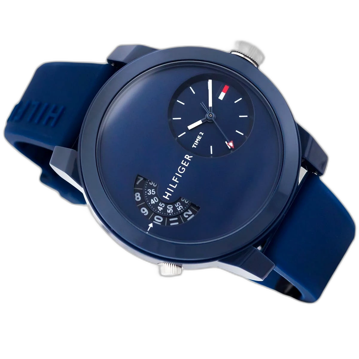 ساعة تومي هيلفيغر Tommy Hilfiger رجالي أصلية موديل (دنيم) 1791556 Denim. الرقم المصنعي TH.306.1.47.2530. بمينا لونها أزرق و سوار من المطاط (سيليكون) بلون أزرق.