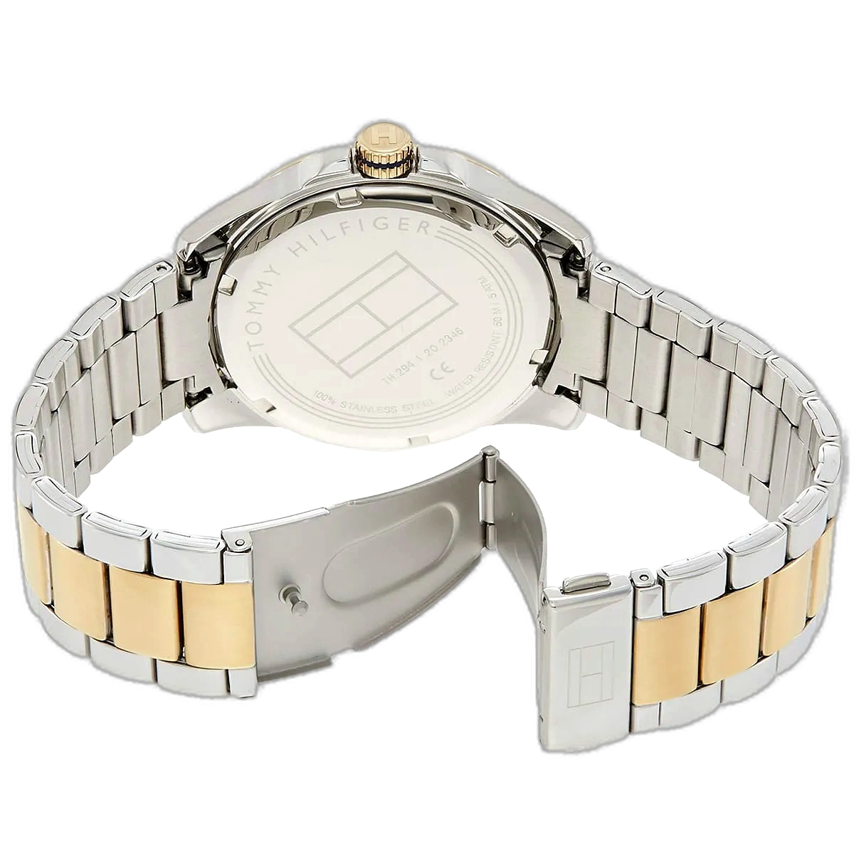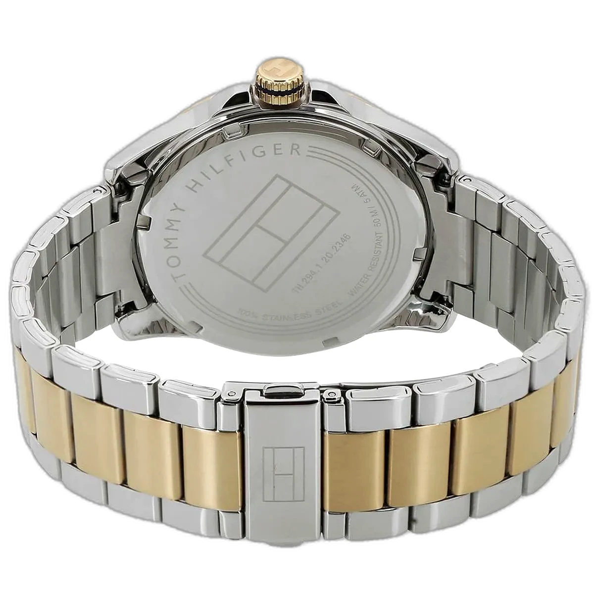 ساعة تومي هيلفيغر Tommy Hilfiger رجالي أصلية موديل (كين) 1791453 Ken. الرقم المصنعي TH.294.1.20.2346. بمينا لونها أزرق و سوار من الستانلس ستيل بلون فضي وذهبي.