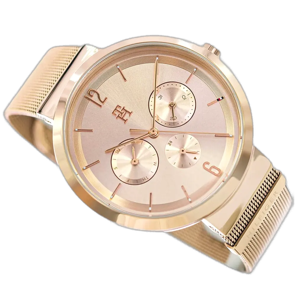 ساعة تومي هيلفيغر Tommy Hilfiger حريمي أصلية موديل (ليديا) 1782538 Lidia. الرقم المصنعي TH.459.3.34.3318. بمينا لونها نحاسي وسوار من الستانلس ستيل بلون نحاسي.