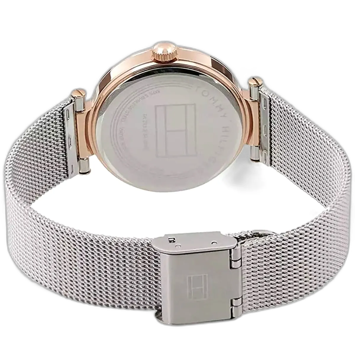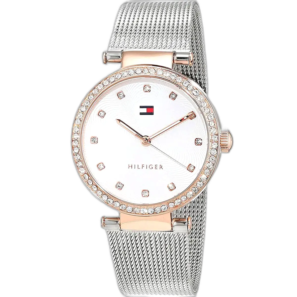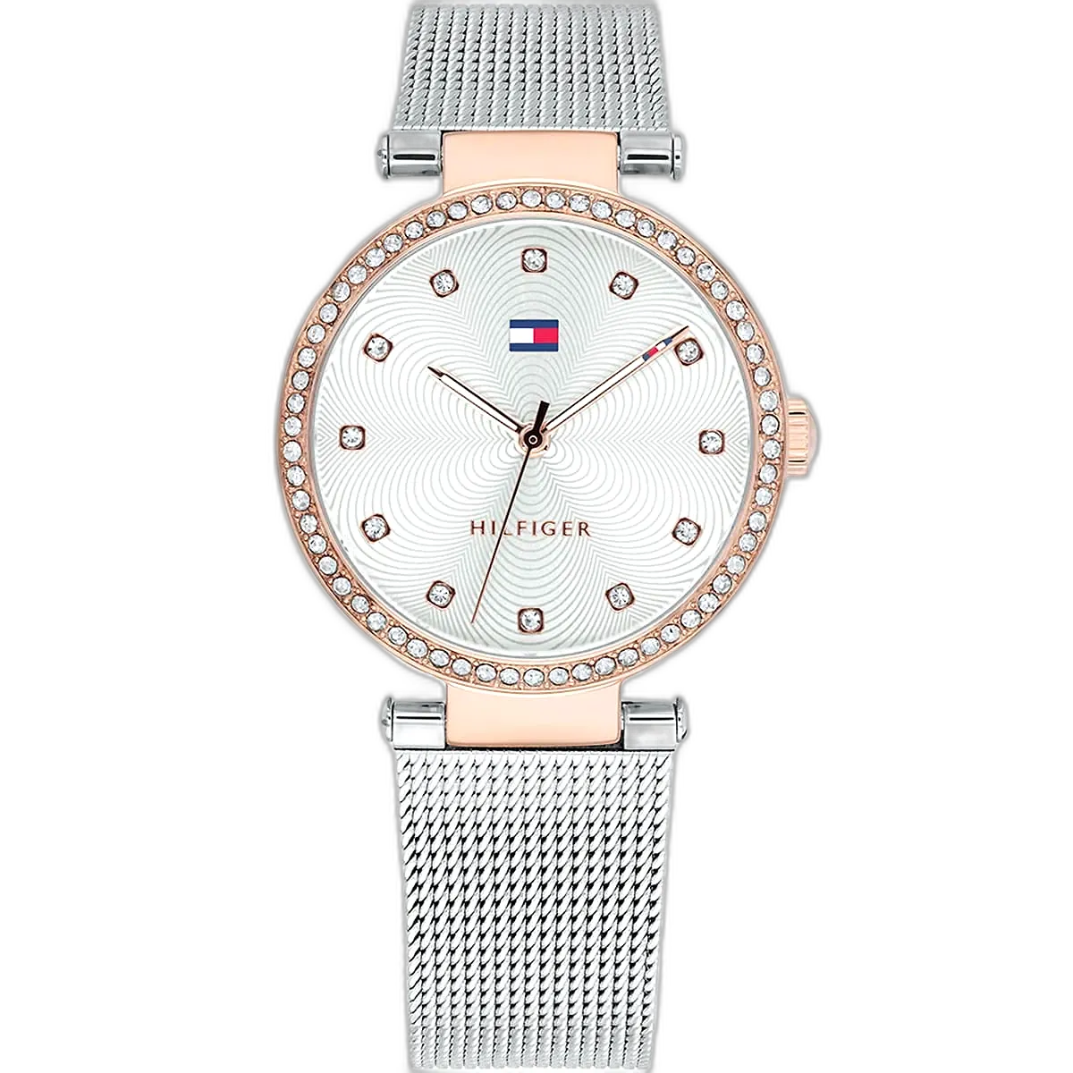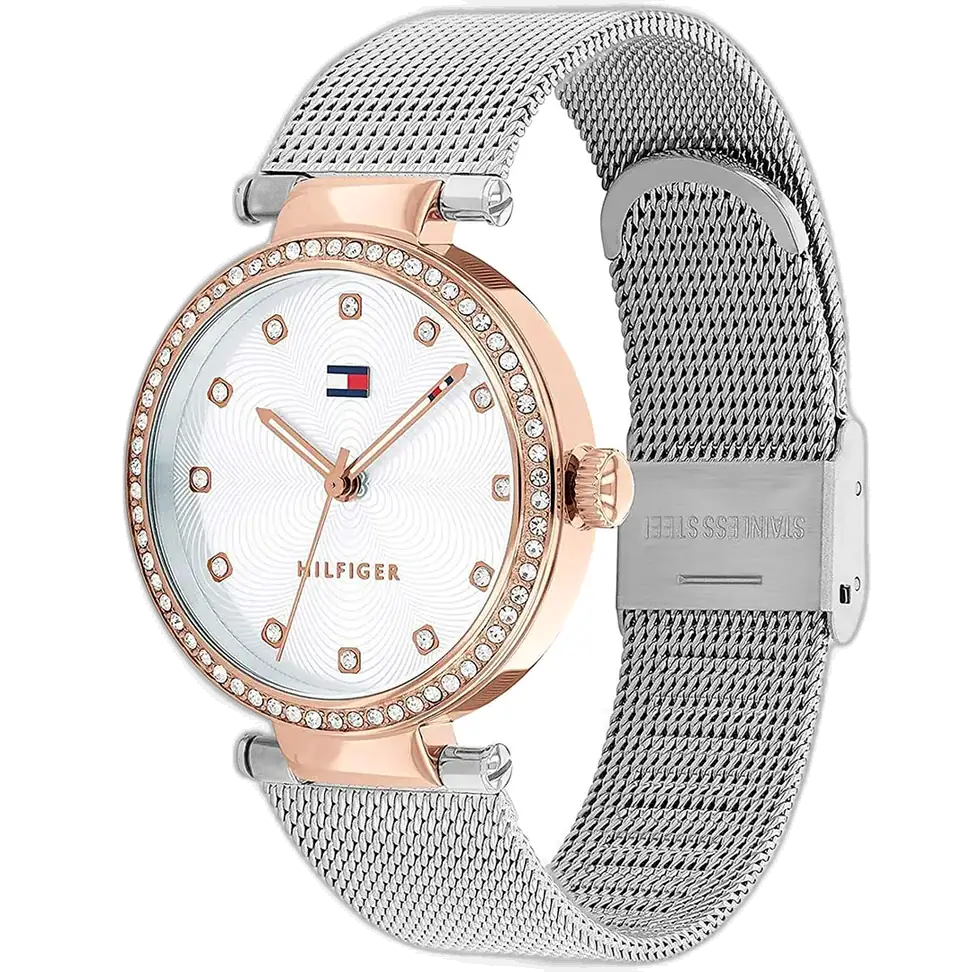 اعة تومي هيلفيغر Tommy Hilfiger حريمي أصلية موديل (لين) 1781863 Lynn. الرقم المصنعي TH.273.3.34.2335S. بمينا لونها فضي وسوار من الستانلس ستيل بلون فضي.