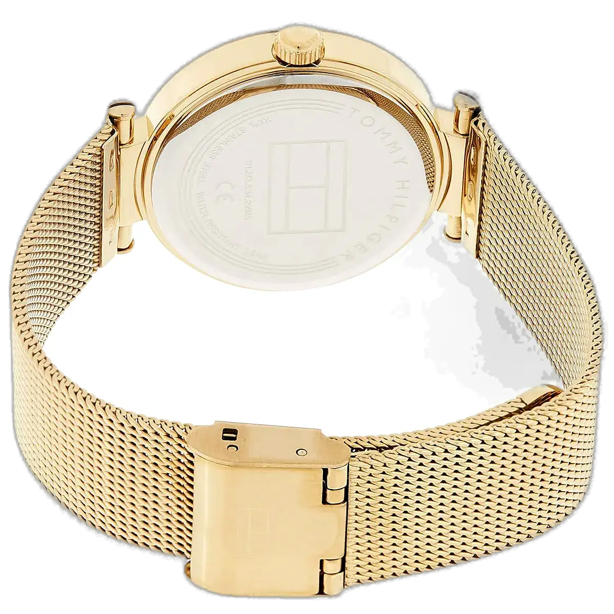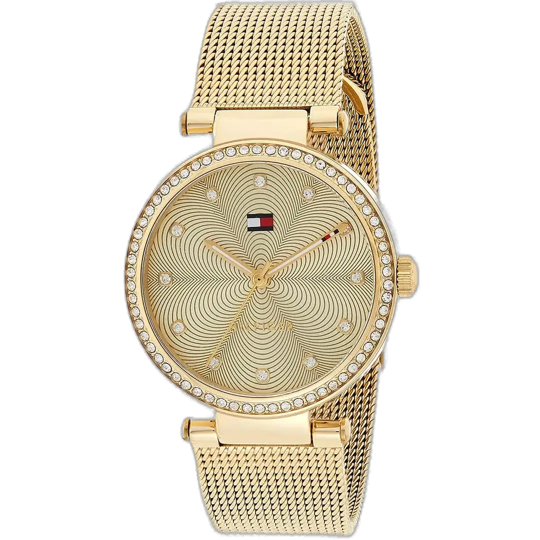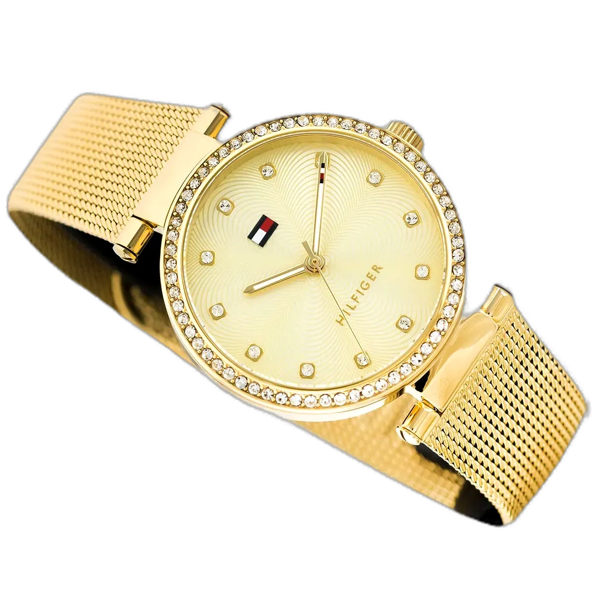 ساعة تومي هيلفيغر Tommy Hilfiger حريمي أصلية موديل (لين) 1781864 Lynn. الرقم المصنعي TH.273.3.34.2336S. بمينا لونها ذهبي وسوار من الستانلس ستيل بلون ذهبي.