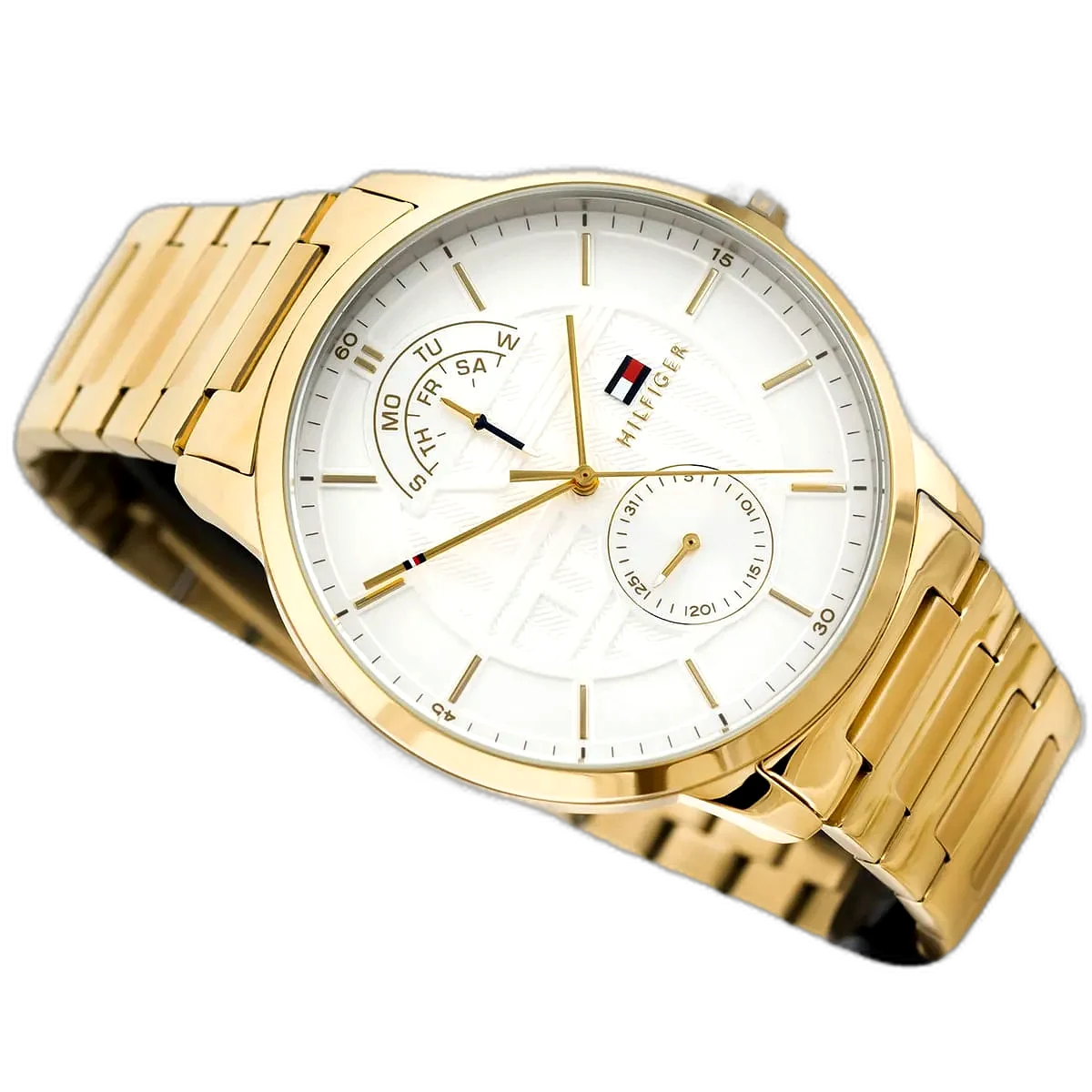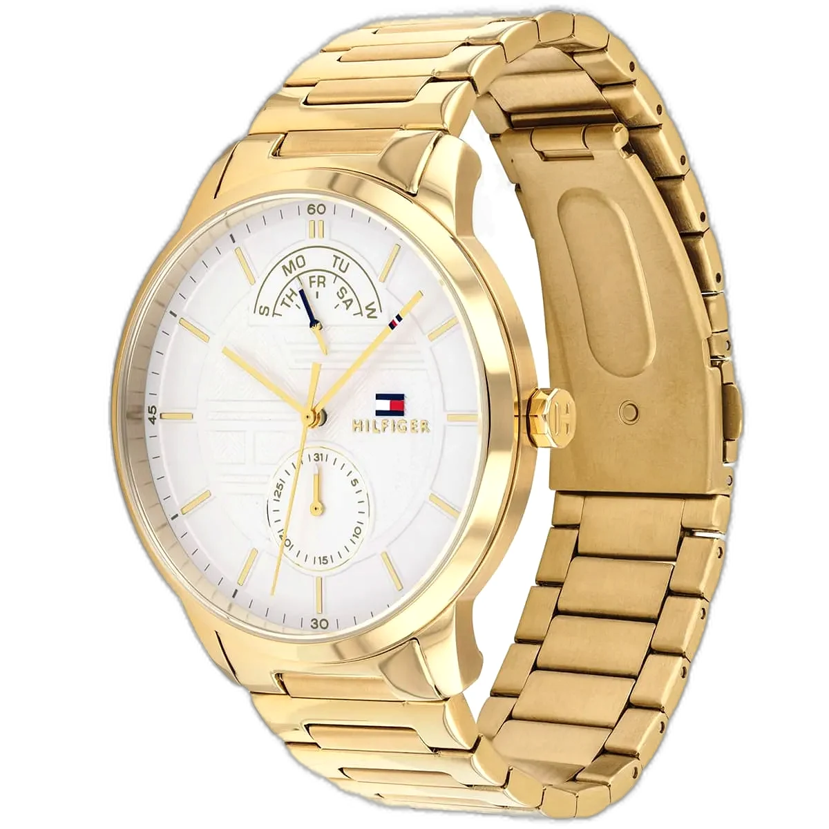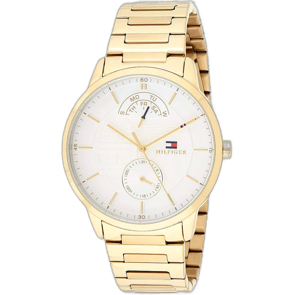 انغمس في عالم الموضة الأمريكية الأيقونية مع ساعة تومي هيلفيغر هنتر، التي تجمع بين الأسلوب الكلاسيكي والوظائف العملية. تشتهر تومي هيلفيغر بحرفيتها عالية الجودة وتصاميمها المميزة، وهذه الساعة الأصلية، موديل 1791609 (الرقم المصنعي TH.49.1.34.2653)، تعكس ذلك بامتياز. بفضل ميناها البيضاء الأنيقة وسوارها الفاخر من الستانلس ستيل باللون الذهبي، تقدم هذه الساعة مظهرًا جريئًا ومتعدد الاستخدامات، مما يجعلها مثالية للرجل العصري الذي يقدر الأناقة والمتانة. مقاومة الماء حتى عمق 50 مترًا تجعلها مناسبة للأنشطة اليومية، بما في ذلك السباحة الخفيفة، ولكنها غير موصى بها للغوص العميق أو الرياضات المائية عالية التأثير. تتميز الساعة بحركة كوارتز متعددة الوظائف مع ثلاثة موانئ فرعية، بما في ذلك مؤشرات اليوم والتاريخ و24 ساعة، مما يضيف عملية وأناقة لتصميمها الديناميكي، مما يجعلها رفيقًا مثاليًا للإعدادات المهنية وغير الرسمية على حد سواء.