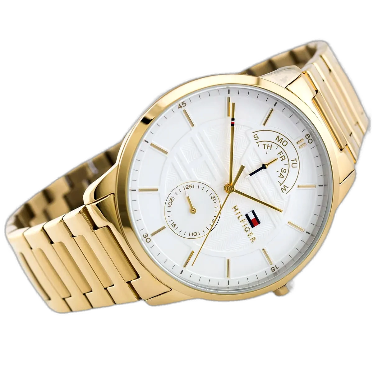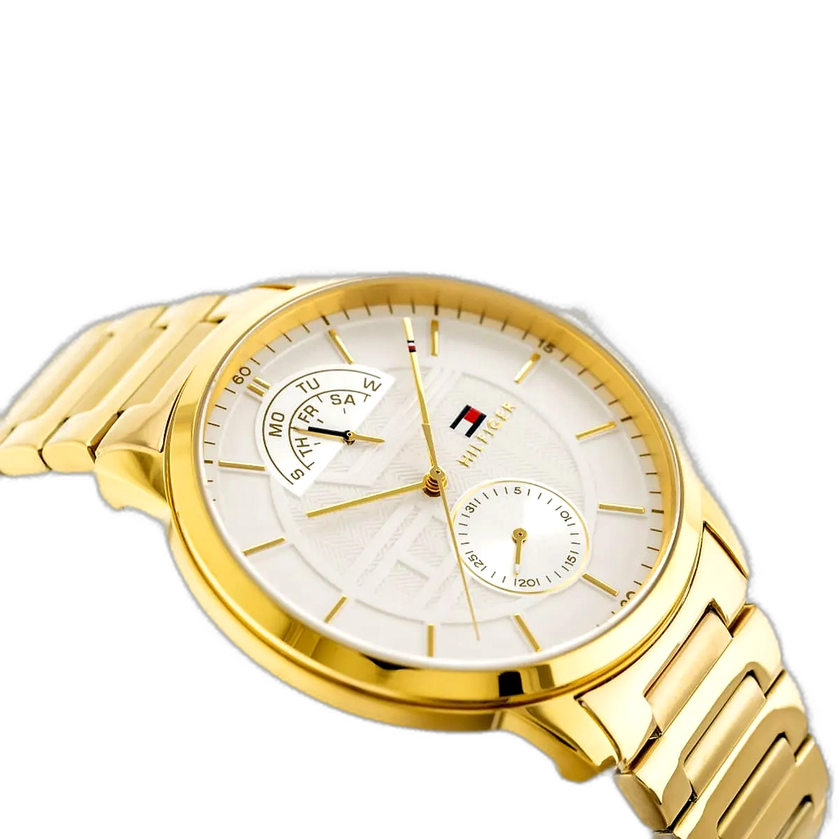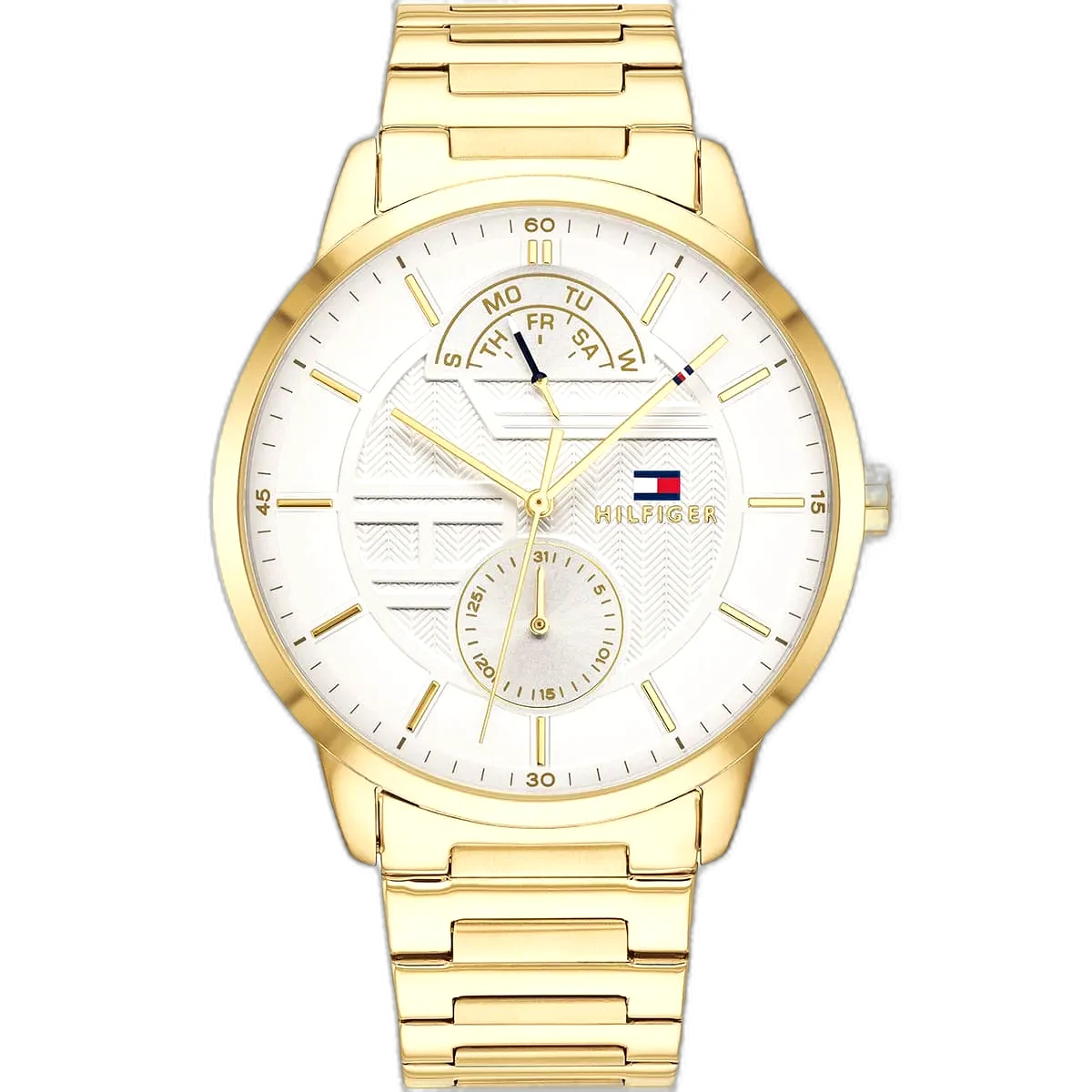 انغمس في عالم الموضة الأمريكية الأيقونية مع ساعة تومي هيلفيغر هنتر، التي تجمع بين الأسلوب الكلاسيكي والوظائف العملية. تشتهر تومي هيلفيغر بحرفيتها عالية الجودة وتصاميمها المميزة، وهذه الساعة الأصلية، موديل 1791609 (الرقم المصنعي TH.49.1.34.2653)، تعكس ذلك بامتياز. بفضل ميناها البيضاء الأنيقة وسوارها الفاخر من الستانلس ستيل باللون الذهبي، تقدم هذه الساعة مظهرًا جريئًا ومتعدد الاستخدامات، مما يجعلها مثالية للرجل العصري الذي يقدر الأناقة والمتانة. مقاومة الماء حتى عمق 50 مترًا تجعلها مناسبة للأنشطة اليومية، بما في ذلك السباحة الخفيفة، ولكنها غير موصى بها للغوص العميق أو الرياضات المائية عالية التأثير. تتميز الساعة بحركة كوارتز متعددة الوظائف مع ثلاثة موانئ فرعية، بما في ذلك مؤشرات اليوم والتاريخ و24 ساعة، مما يضيف عملية وأناقة لتصميمها الديناميكي، مما يجعلها رفيقًا مثاليًا للإعدادات المهنية وغير الرسمية على حد سواء.