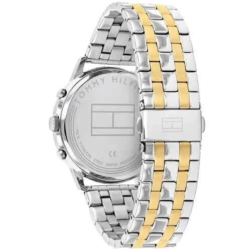 تُعد ساعة تومي هيلفيغر 1710432 من مجموعة “ايستون” (Easton) تعبيراً متفوقاً عن الأسلوب الأمريكي الكلاسيكي، حيث تجسد التزام العلامة التجارية بدمج الوظائف العالية مع التنوع المعدني. هذا الموديل مرغوب بشكل استثنائي لتباينه البصري الملفت: ميناء أزرق عميق مقابل سوار معدني ثنائي اللون يمزج ببراعة بين اللمعان البارد للون الفضي والدفء المترف للون الذهبي. تُعد ساعة تومي هيلفيغر 1710432 ساعة أنيقة ومتعددة الاستخدامات، مصممة بدقة للرجل العصري الذي يقدر الميزات متعددة الوظائف والمرونة التامة في التنسيق. إنها بمثابة إكسسوار يومي أساسي، يعزز بسهولة كلاً من الإطلالات الرسمية والكاجوال.