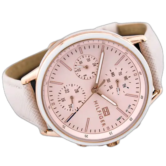 تُعد ساعة تومي هيلفيغر كارلي 1781789 قطعة أنيقة ووردية. تتميز هذه الساعة النسائية بعلبة 38 ملم بطلاء نحاسي (ذهبي وردي) فاخر، وسوار جلد طبيعي وردي ناعم. إنها الإكسوار الأمثل لإضفاء توهج دافئ وأناقة أنثوية. مقاومة للماء حتى 3 ATM.
