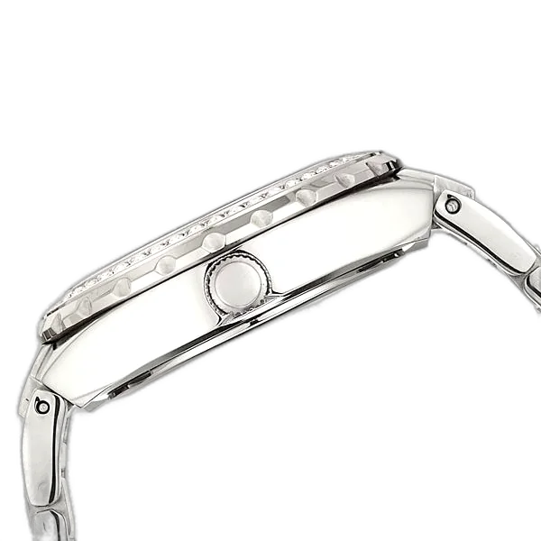 تأتي ساعة جيس فيفا W0111L1 بتصميم علبة دائرية كلاسيكية بقطر 36 ملم، وهو حجم مثالي يوازن بين وضوح الميناء والظهور الأنيق على المعصم الأنثوي. العلبة مصنوعة من الستانلس ستيل القوي المصقول باللون الفضي، وتتميز بحافة (Bezel) مرصعة بالكريستال اللامع الذي يضيف بُعداً بصرياً فخماً ويجعلها قطعة مجوهرات براقة.