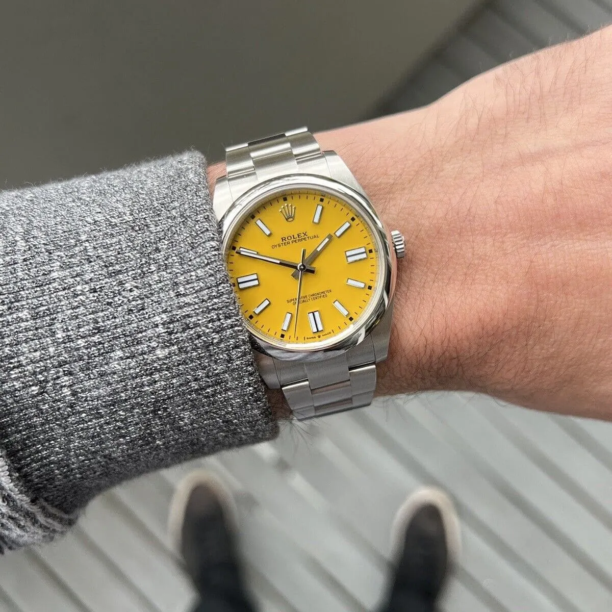 ساعة رولكس اويستر بربتشوال للرجال 126000، مينا صفراء
