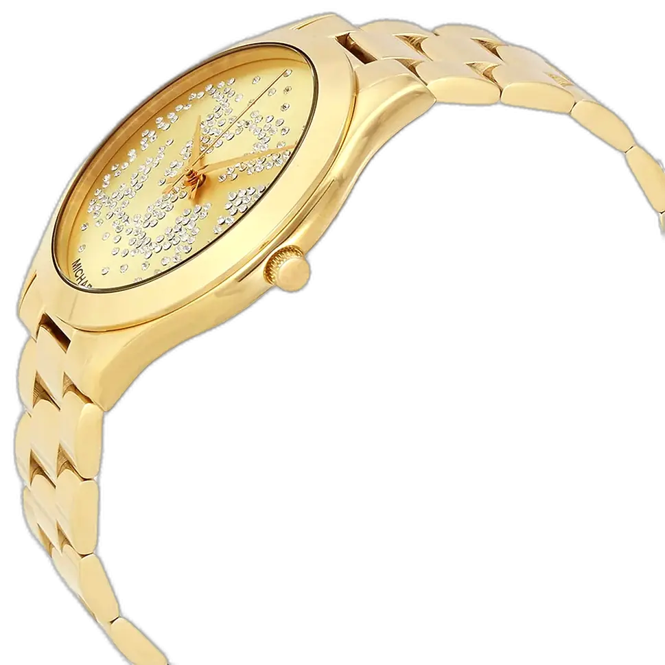 ينبع الجمال الأساسي لـ MK3590 من التنفيذ السلس والمتقن للون الذهبي الأصفر التقليدي. الهيكل بأكمله، بما في ذلك العلبة والسوار الأنيق، مصنوع من الستانلس ستيل القوي ومطلي بطلاء ذهبي لامع وموحد. يُعد حجم “ميني” 33 ملم عاملاً حاسماً، حيث يوفر ملاءمة أنثوية وراقية على المعصم، مع الحفاظ على وضوح وجاذبية اللون الذهبي. الميزة الأكثر لفتاً هي الإطار المرصع بالكريستال، الذي يحول الساعة إلى قطعة مجوهرات براقة، حيث يلتقط الضوء ويعكسه باستمرار، مما يزيد من إشراقها.