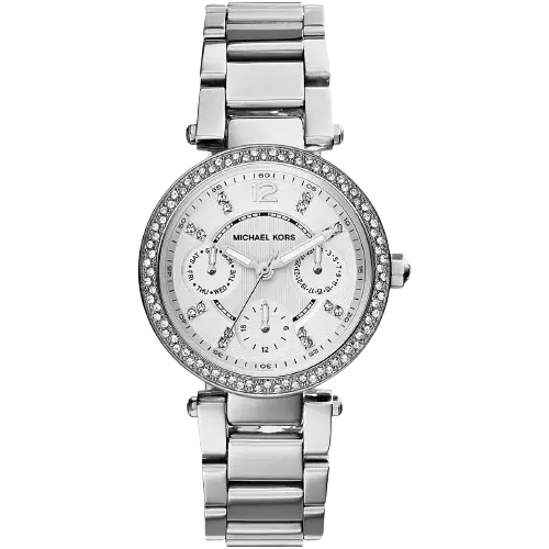 تُعد ساعة مايكل كورس MK5615 الأصلية (باركر) مزيجاً باهراً من الوظيفة الرياضية والفخامة. تتميز هذه الساعة النسائية بعلبة 39 ملم بطلاء فضي أحادي اللون متكامل، وحركة كرونوغراف، وإطار مرصع بالكامل بالكريستال اللامع. إنها الإكسسوار المثالي لإضافة توهج باهر وأناقة عملية. مقاومة للماء حتى 5 ATM.