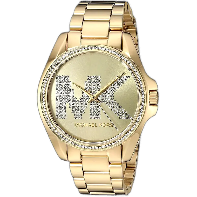 تُعد ساعة مايكل كورس MK6555 (برادشو) كرونوغرافاً متلألئاً كبير الحجم. تتميز هذه الساعة النسائية بعلبة كبيرة 43 ملم، وطلاء ذهبي أحادي اللون فاخر، وإطار مرصع بالكامل بالكريستال وشعار MK. إنها الإكسسوار الأمثل لإضفاء بيان ذهبي قوي وفاخر. مقاومة للماء حتى 10 ATM.