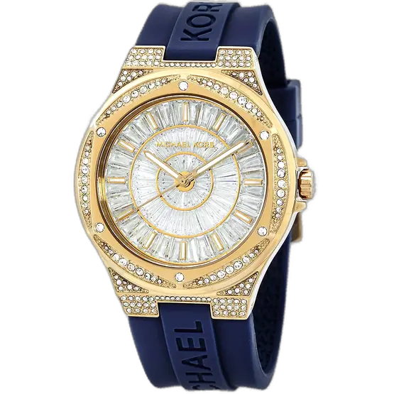 تُعد ساعة مايكل كورس MK7333 قطعة أساسية للأناقة الراقية والعصرية. يمنحها تصميمها المتباين (الأبيض والأزرق)، وسوارها السيليكون المريح، ولمسات الكريستال، لمسة فاخرة ومميزة، مما يجعلها الإضافة المثالية لمجموعة إكسسواراتكِ.