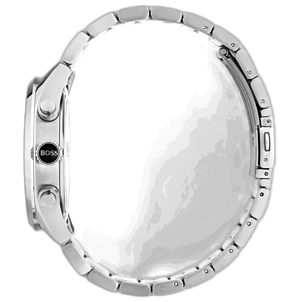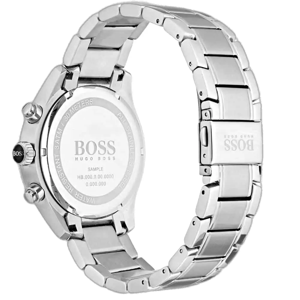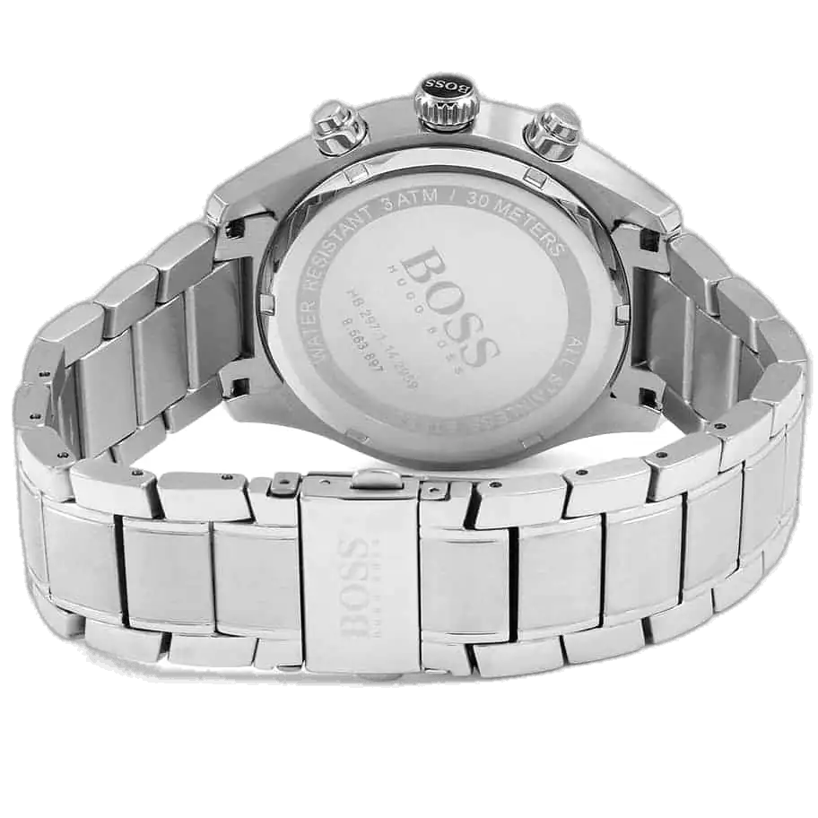 للحصول على إطلالة داكنة وأكثر هدوءًا ضمن نفس المجموعة، استكشف نسخة الميناء الأسود الكلاسيكية: ساعة هوجو بوس كرونوغراف جراند بريكس للرجال – 1513477، مينا سوداء وسوار ستانلس ستيل فضي.