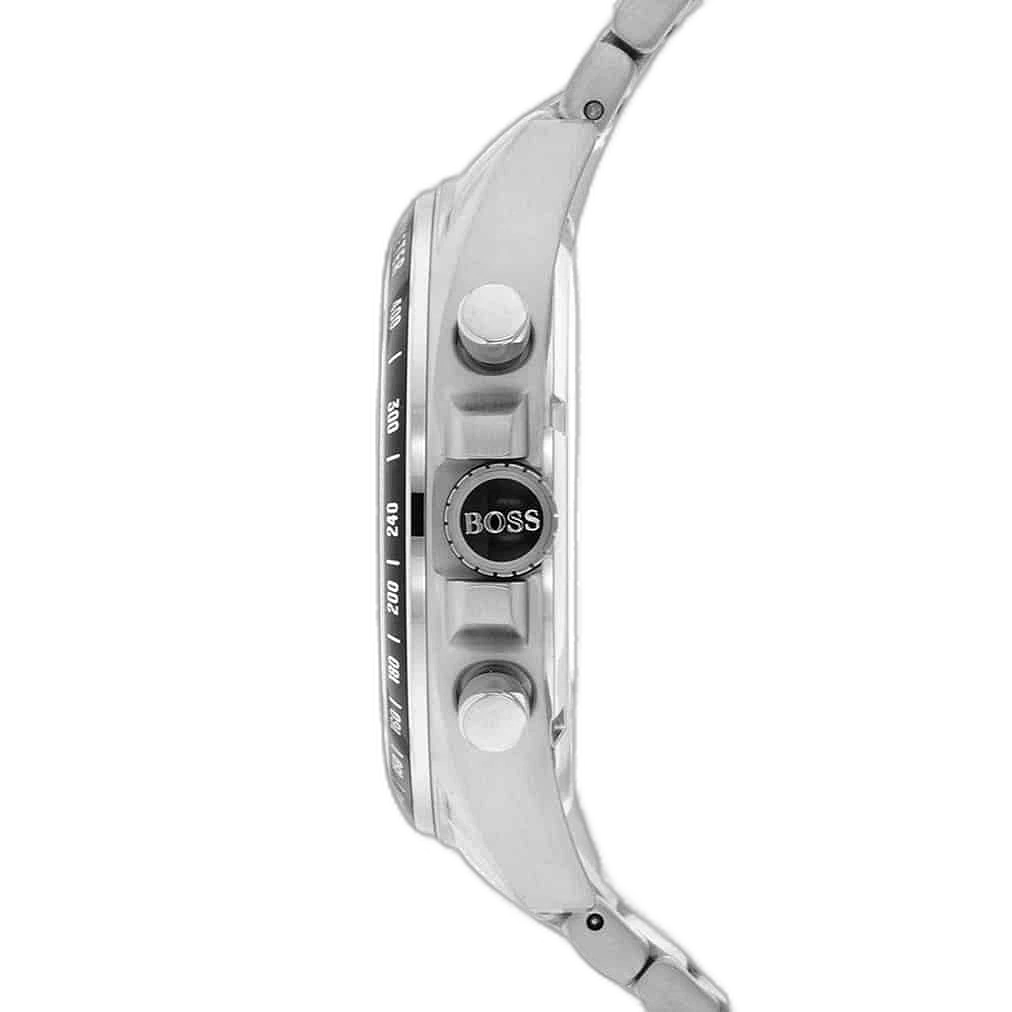 للحصول على مظهر تقليدي عالي التباين ضمن مجموعة درايفر، يمكنك الاطلاع على إصدار المينا الأسود: ساعة هوجو بوس كرونوغراف للرجال درايفر – 1513080، مينا أسود وسوار معدني فضي.