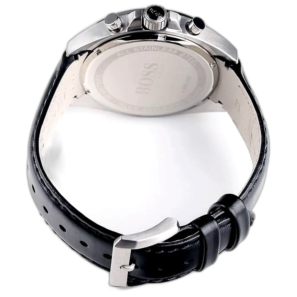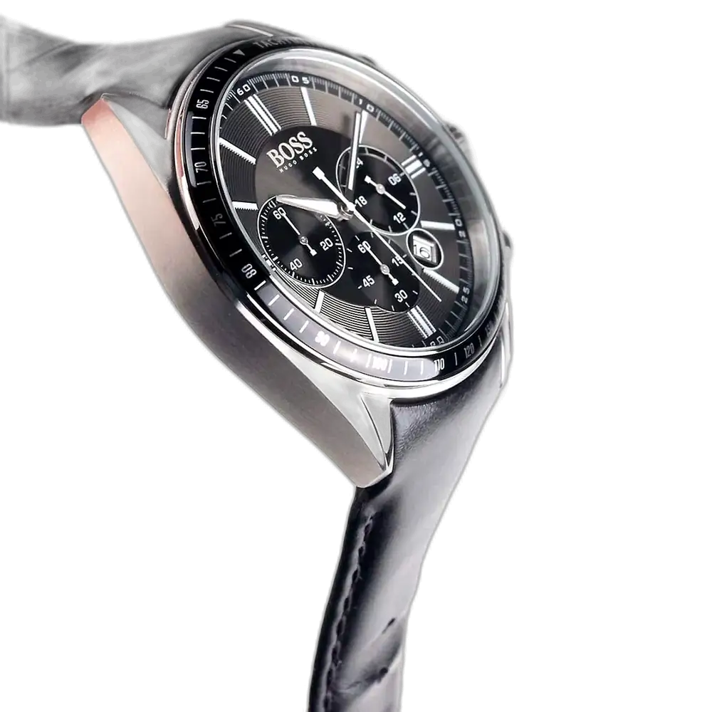 ارفعي أناقتك الرياضية مع ساعة هوجو بوس الأصلية للرجال، موديل (درايفر) 1513085 كرونوغراف. تتميز هذه الساعة الديناميكية بمينا أسود مذهل وسوار جلد طبيعي أسود فاخر، لتجمع بين التصميم الجريء والوظائف الدقيقة.
