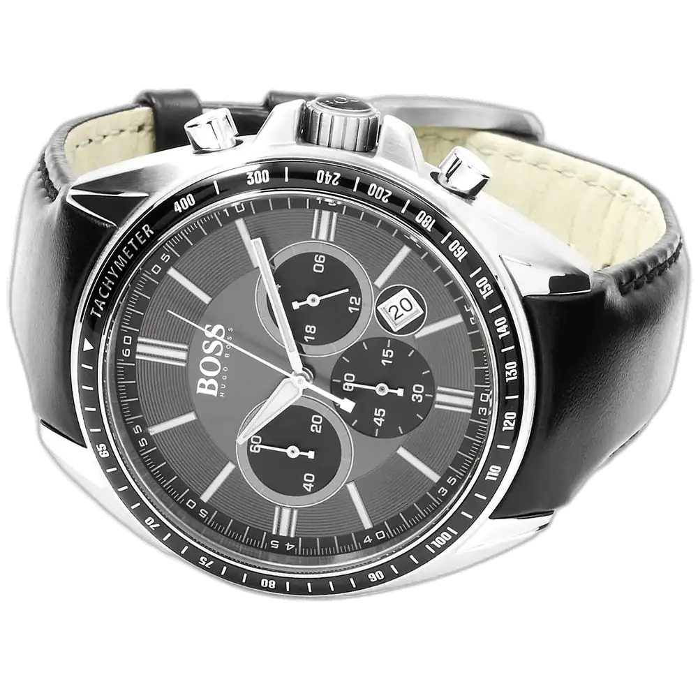 استمتع بالإثارة في الأداء الحديث مع ساعة هوجو بوس درايفر 1513085 كرونوغراف، المصممة للرجل النشيط الذي يطالب بالأناقة والموثوقية. كرمز للهندسة الألمانية، يشتهر هوجو بوس بدمج الفخامة والابتكار. هذه الساعة، من مجموعة درايفر، تتميز بهيكل قوي من الستانلس ستيل مع إطار تاخيميتر، يحتوي على مينا أسود إشعاع شمسي مع عقارب فضية مضيئة ومؤشرات فهرسية للرؤية المتفوقة. مجهزة بثلاثة عدادات فرعية لتوقيت الكرونوغراف، ونافذة تاريخ عند 4:30، ومدعومة بحركة كوارتز يابانية دقيقة، توفر الدقة في كل مطاردة.