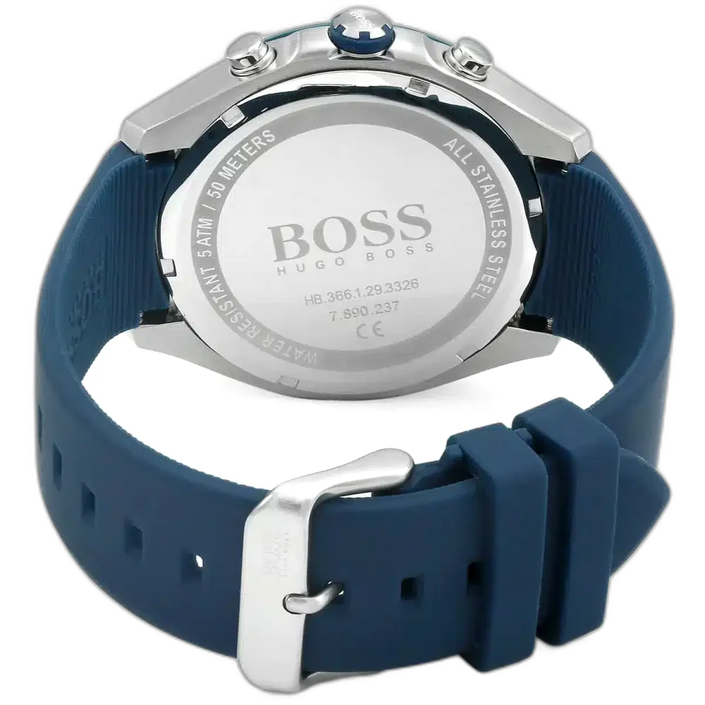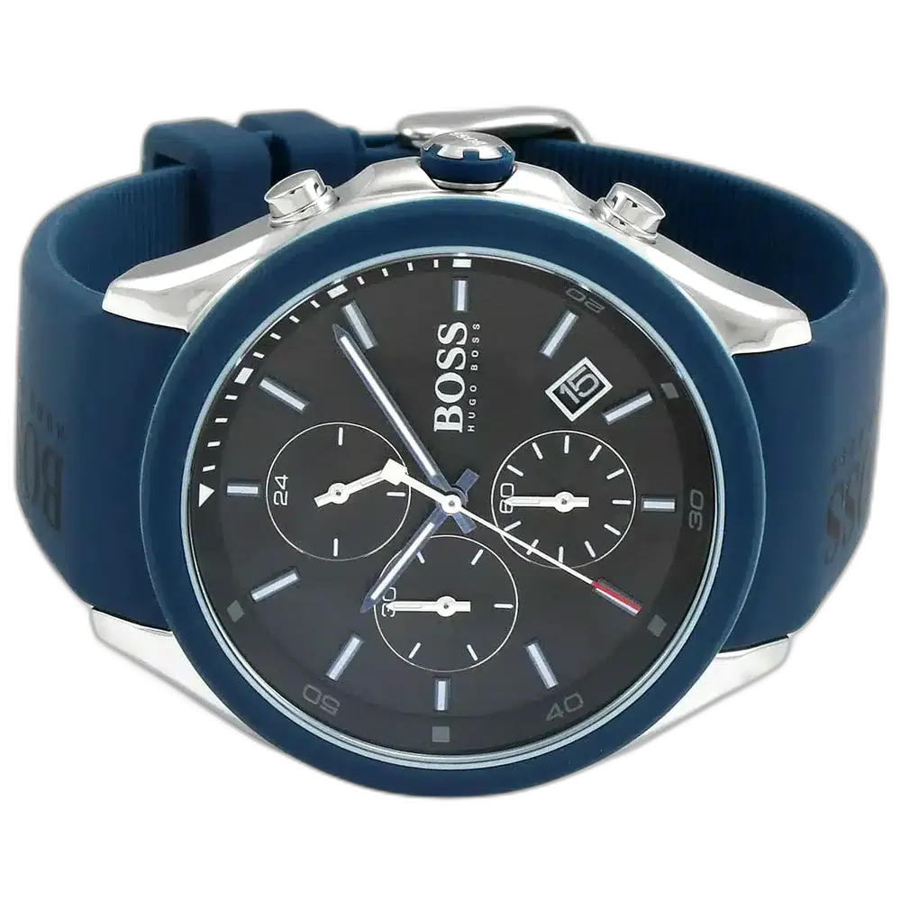 ارفع أناقتك الديناميكية مع ساعة هوجو بوس الأصلية للرجال، موديل (فيلوسيتي) 1513717 كرونوغراف. تتميز هذه الساعة الجريئة بمينا أسود مذهل وسوار سيليكون أزرق نابض بالحياة، لتجمع بين الفخامة العصرية والوظائف عالية الأداء.