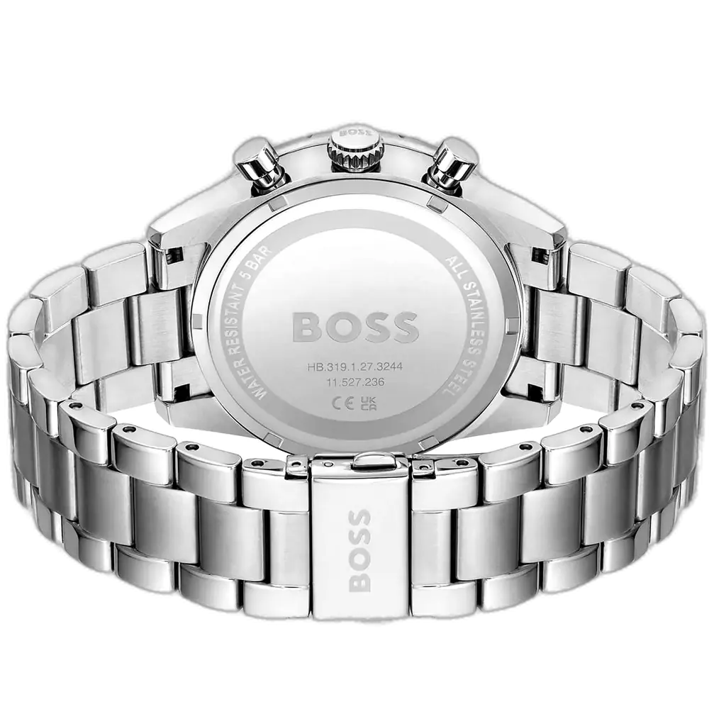 تحكم بأناقتك مع ساعة هوجو بوس بايلوت اديشن كرونو 1513850 كرونوغراف، الرقم المصنعي HB.424.1.14.3525، المصممة للرجل العصري الذي يقدر الدقة والرقي. يشتهر هوجو بوس بحرفته الألمانية التي تجمع بين الفخامة والابتكار في هذه القطعة المميزة من مجموعة بايلوت اديشن. تتميز الساعة بهيكل قوي من الستانلس ستيل يحتوي على مينا أزرق إشعاع شمسي حيوي، مزين بعقارب ومؤشرات فضية مضيئة لتحسين القراءة. مجهزة بثلاثة عدادات فرعية لتوقيت الكرونوغراف، إطار تاخيميتر لقياس السرعة، ونافذة تاريخ عند 4:30، ومدعومة بحركة كوارتز يابانية موثوقة لضمان دقة لا تتزعزع. يضيف السوار الستانلس ستيل الفضي المصقول مع قفل دفعة الزر لمسة أنيقة ومتعددة الاستخدامات، مما يجعلها مثالية للإعدادات المهنية والمغامرة.