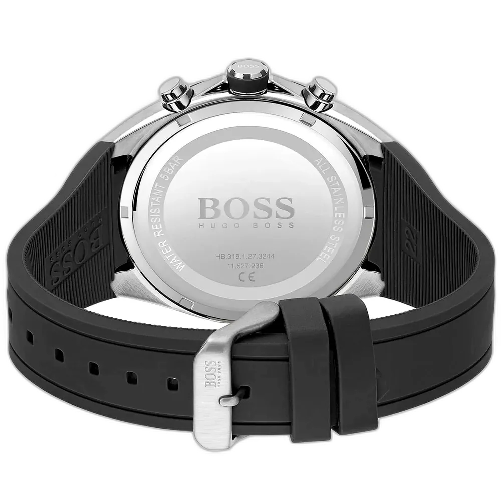استمتع بجوهر التصميم المميز مع ساعة هوجو بوس ديستانك 1513855 كرونوغراف، الرقم المصنعي HB.428.1.34.3541، المصممة للرجل العصري الذي يبرز بالدقة والأناقة. يشتهر هوجو بوس بحرفته الألمانية التي تجمع بين الفخامة والابتكار في هذه القطعة المميزة من مجموعة ديستانك. تتميز الساعة بهيكل قوي من الستانلس ستيل يحتوي على مينا أسود إشعاع شمسي جريء، مزين بعقارب ومؤشرات فضية مضيئة لتحسين القراءة. مجهزة بثلاثة عدادات فرعية لتوقيت الكرونوغراف، إطار تاخيميتر لقياس السرعة، ونافذة تاريخ عند 4:30، ومدعومة بحركة كوارتز يابانية موثوقة لضمان دقة لا تتزعزع. يضمن السوار السيليكون الأسود المتين الراحة والمرونة، مما يجعلها مثالية للأنشطة النشطة والارتداء اليومي.