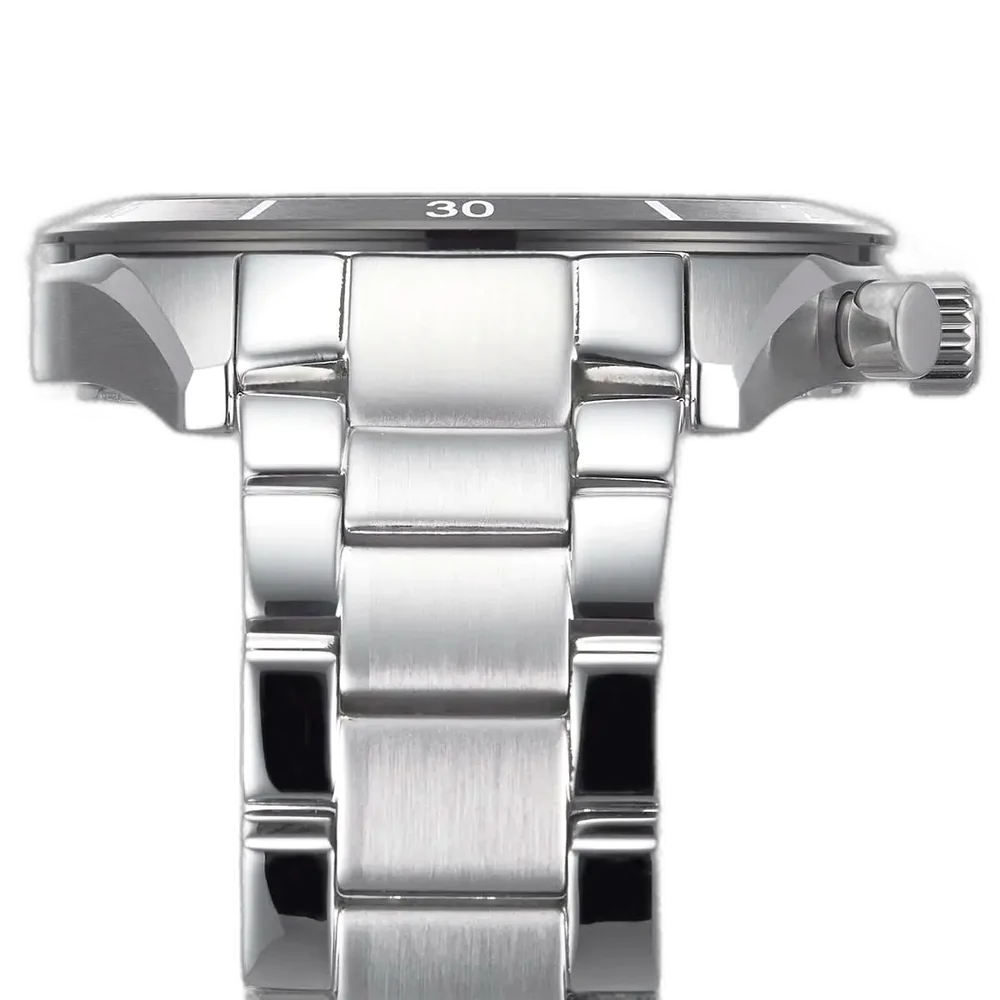 اكتشف جوهر المغامرة الراقية مع ساعة هوجو بوس سانتياغو 1513862 كرونوغراف، الرقم المصنعي HB.431.1.34.3558، المصممة للرجل العصري الذي يقدر الأناقة والدقة. يشتهر هوجو بوس بحرفته الألمانية التي تجمع بين الفخامة والابتكار في هذه القطعة المميزة من مجموعة سانتياغو. تتميز الساعة بهيكل قوي من الستانلس ستيل يحتوي على مينا أسود إشعاع شمسي مذهل، مزين بعقارب ومؤشرات فضية مضيئة لتحسين القراءة. مجهزة بثلاثة عدادات فرعية لتوقيت الكرونوغراف، إطار تاخيميتر لقياس السرعة، ونافذة تاريخ عند 4:30، ومدعومة بحركة كوارتز يابانية موثوقة لضمان دقة لا تتزعزع. يضيف السوار الستانلس ستيل الفضي المصقول مع قفل دفعة الزر لمسة أنيقة ومتعددة الاستخدامات، مما يجعلها مثالية للإعدادات المهنية والاستكشافية.