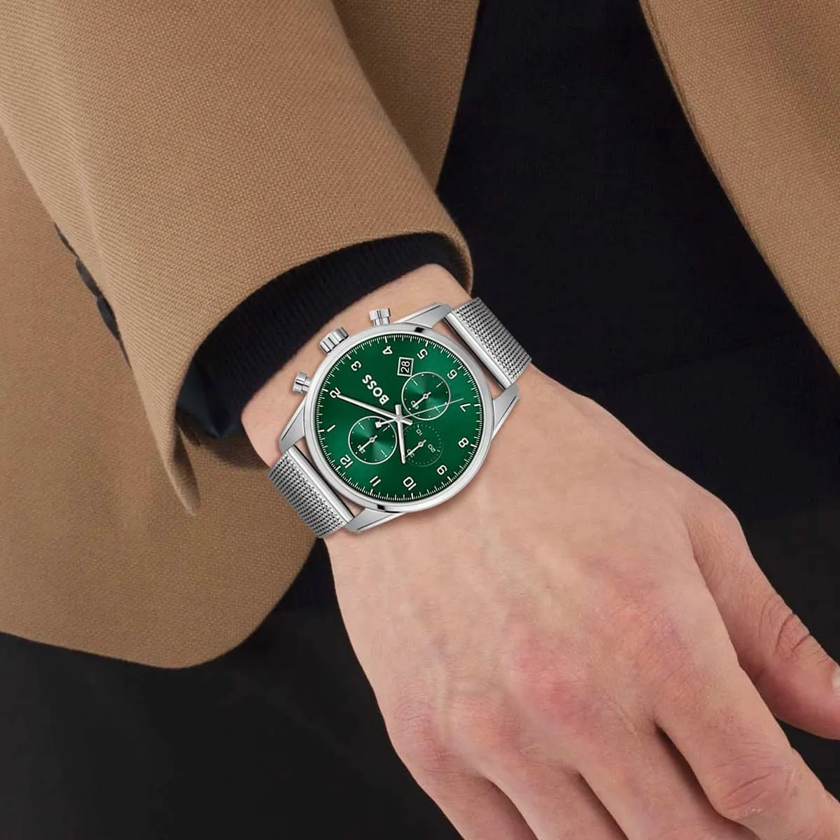 ساعة هوجو بوس سكاي ماستر كرونوغراف للرجال 1513938 – مينا باللون الأخضر