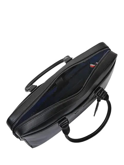 راحة تنفيذية في الحمل: مع مقابض جلدية معززة وحزام كتف قابل للتعديل يحمل هوية الماركة، توفر شنطة تومي هيلفيغر بيزنس تنقلاً سهلاً للمحترفين حول العالم.