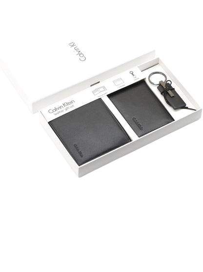 طقم كالفن كلاين: – محفظة، حامل بطاقات، وميدالية مفاتيح- أسود.