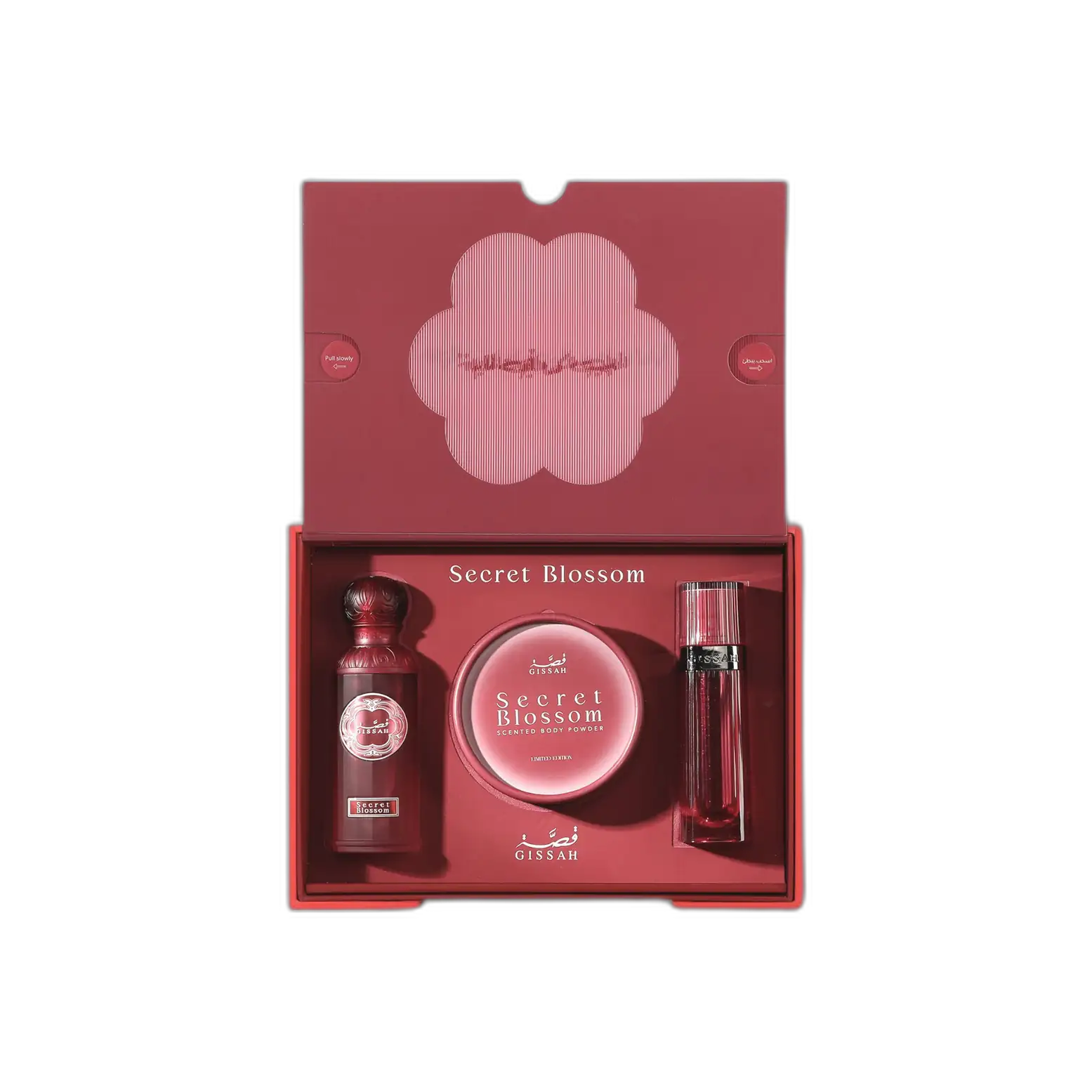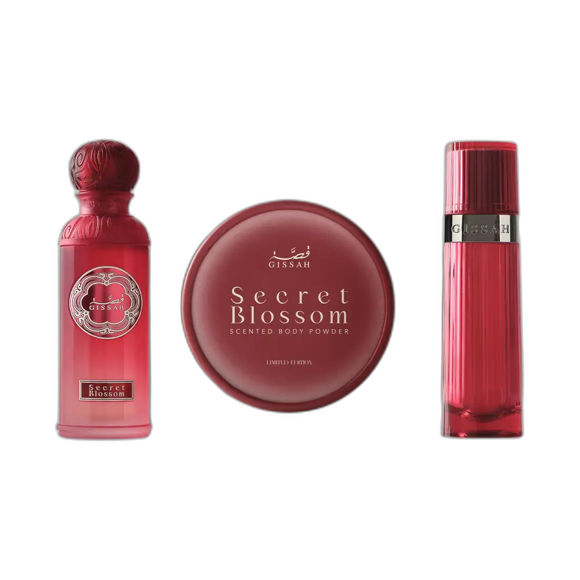 تُعد مجموعة سيكريت بلوسوم من قصة تشكيلة أنثوية مذهلة أُطلقت لعام 2025. توفر هذه المجموعة الفاخرة المكونة من 3 قطع تجربة حسية أسطورية، حيث تجمع بين عطر مركز برائحة الزهور والفواكه، وبودرة معطرة حريرية، وخمرية حسية للشعر والجسم لضمان هالة أيقونية ورومانسية تدوم طويلاً.