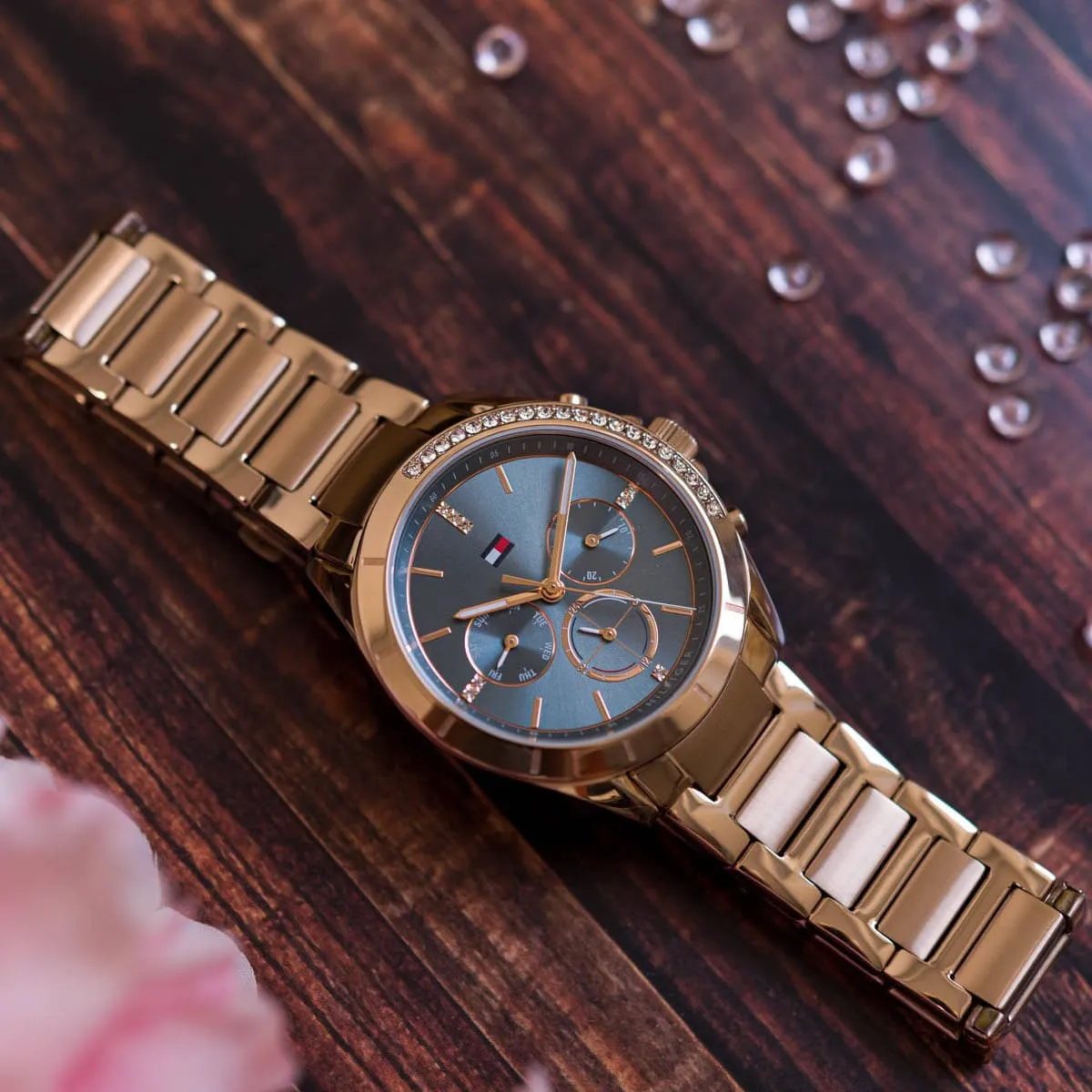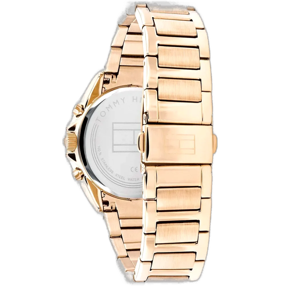 Embrace a sleek, modern, and elegant look with this original Tommy Hilfiger watch. This authentic timepiece, reference 1782386 (Kennedy model), features a sophisticated blue dial and a polished rose gold-toned stainless steel bracelet.