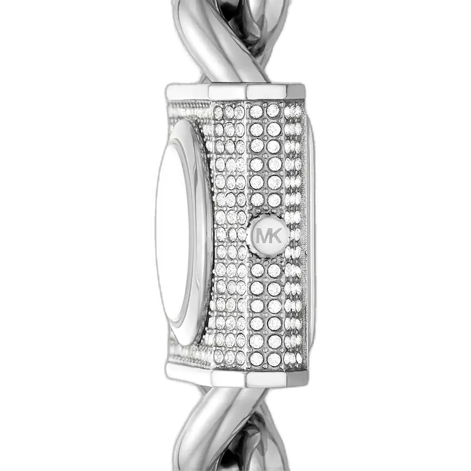 Michael Kors Women’s MK Chain Lock Watch MK4718, Signature All-Silver.